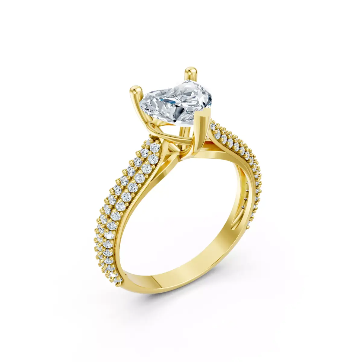 • Pear-cut center diamond with strong prong support• Double / multi-row pavé diamond shank• Symmetrical and balanced ring profile• Comfort-fit inner band for wearability• Clean, editable CAD geometry