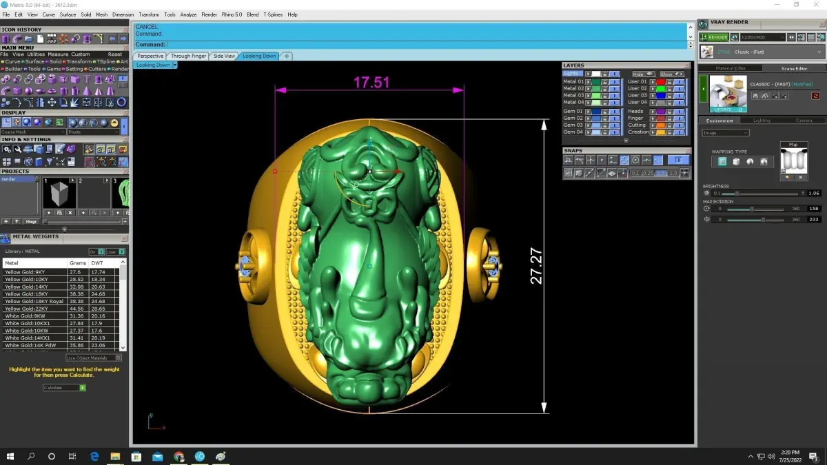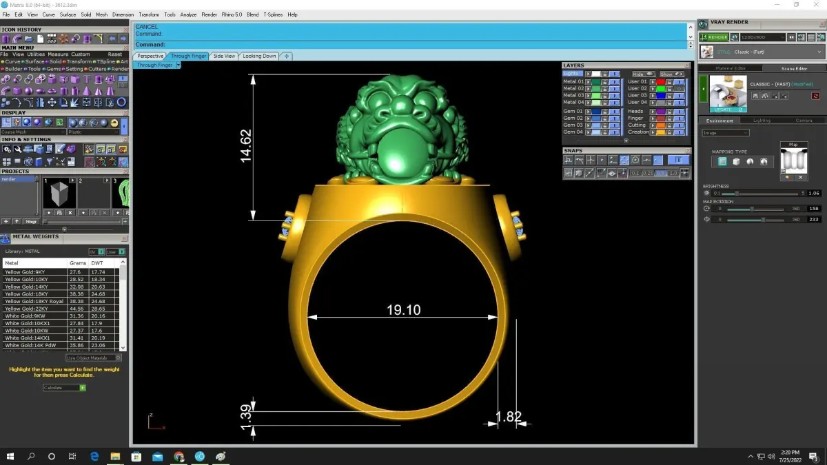This professional 3D jewelry model is fully prepared for casting and stone setting workflows. Detailed technical images are included to clearly present dimensions, estimated metal weight, gemstone sizes, and stone quantity, allowing jewelers and manufacturers to accurately evaluate production feasibility and material requirements.