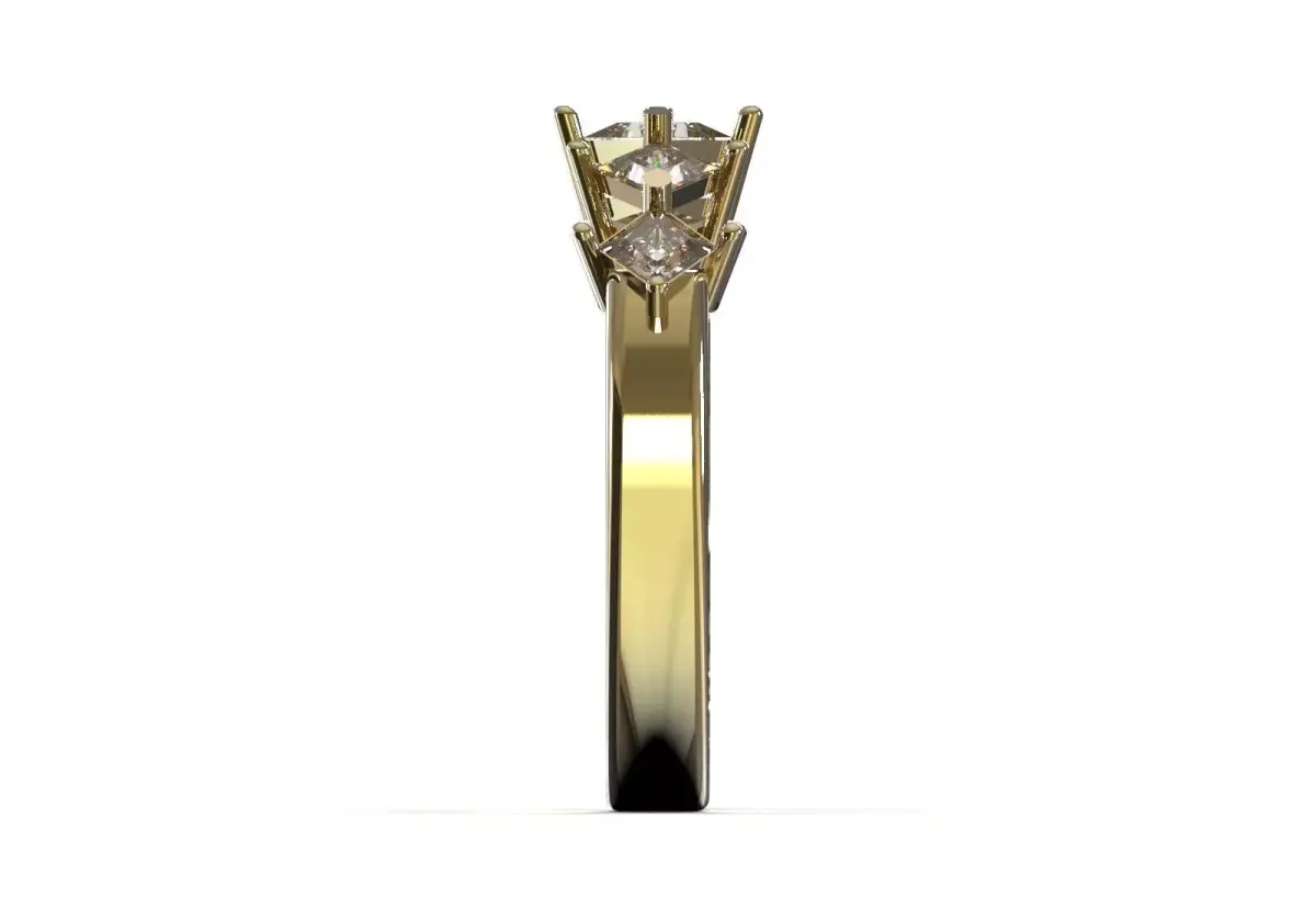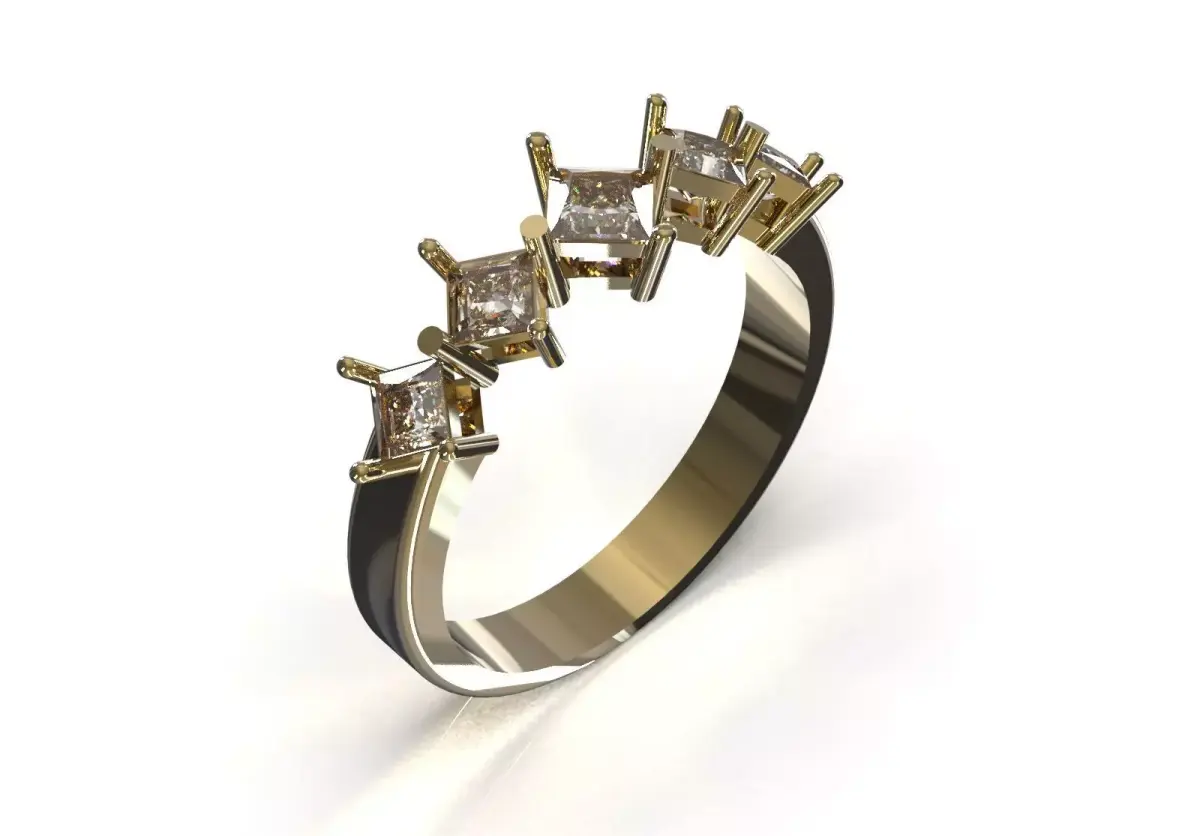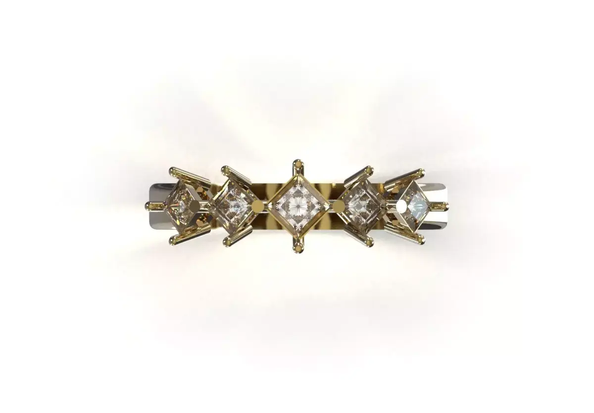 - Stone Type: Use of 5 Princess Cut gems that are placed side by side in a sequential and precise order.