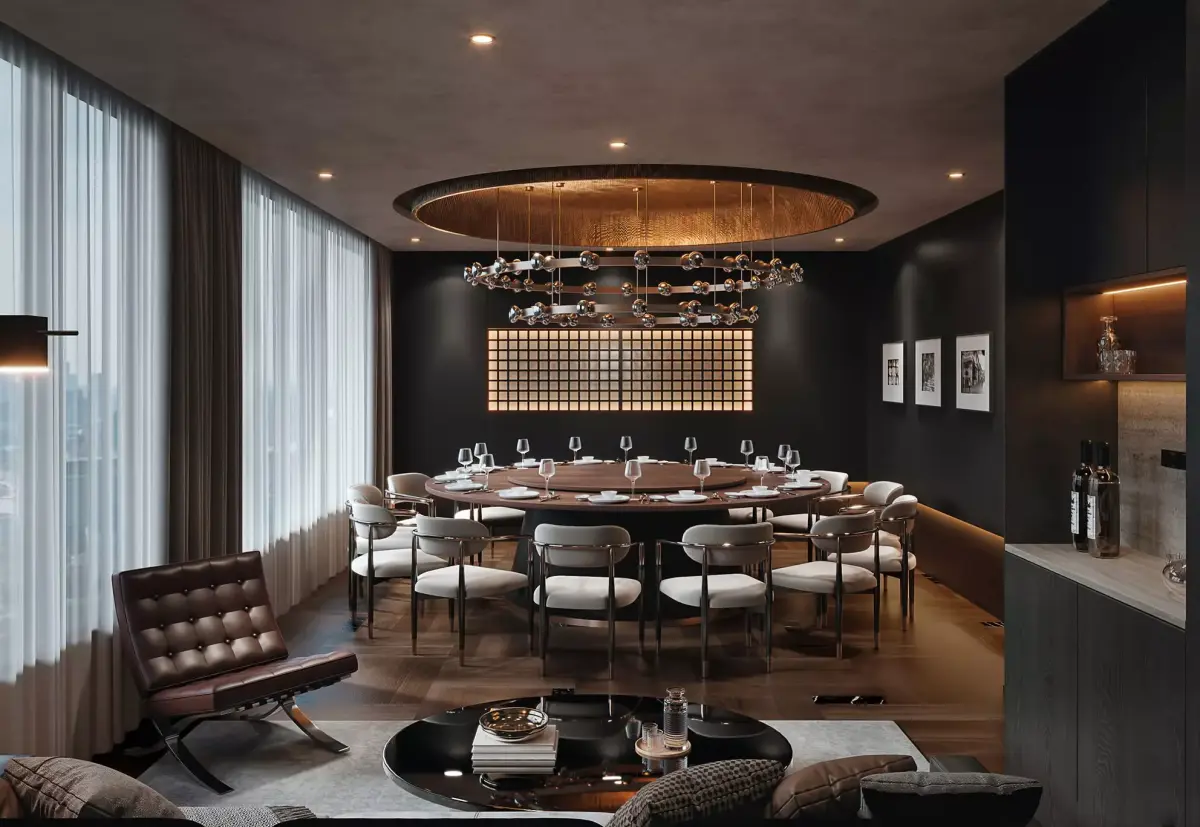 Home Catalog Luxury Private Dining Lounge with Round Table and Chandelier 3D model