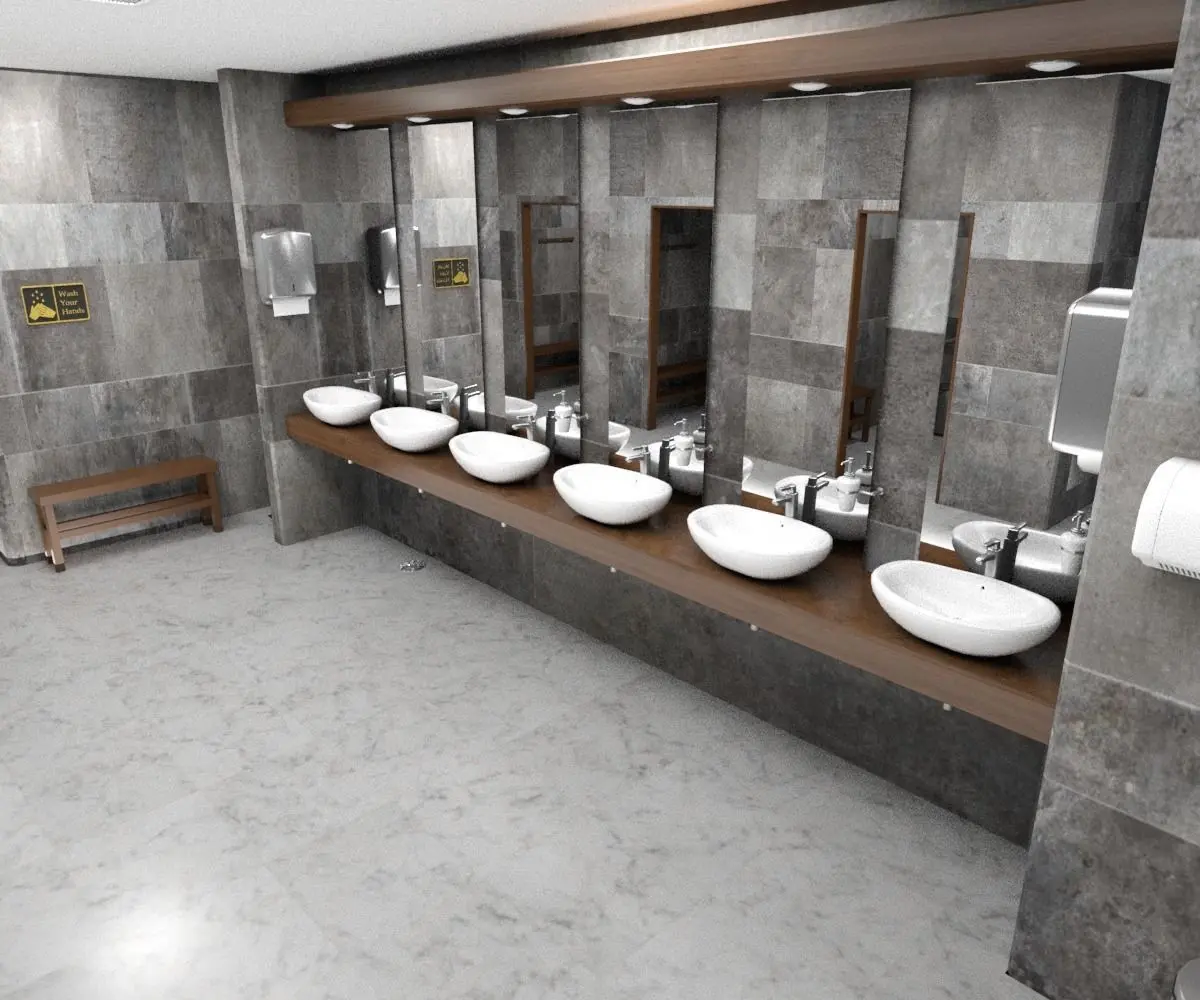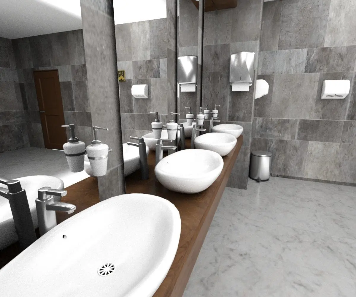 2 Realistic Luxury public baths with all their common elements with unique details, textures, uvm and materials applied according to their environment, lowpoly is applied in most elements. Each item that includes this asset can be modified or moved as required.Includes the following:-Toilets-Signs-Washbasins-Liquid soap dispenser-Mirror-Mingitory / urinals-Trash cans-Hand dryer -Roll holder-Air extractor-Structure with door, locks and walls-Drain grid