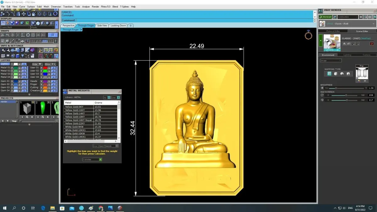 This professional 3D jewelry model is fully prepared for casting workflows. Detailed technical images are included to clearly present dimensions, estimated metal weight, and structural specifications, allowing jewelers and manufacturers to accurately evaluate production feasibility and material requirements.