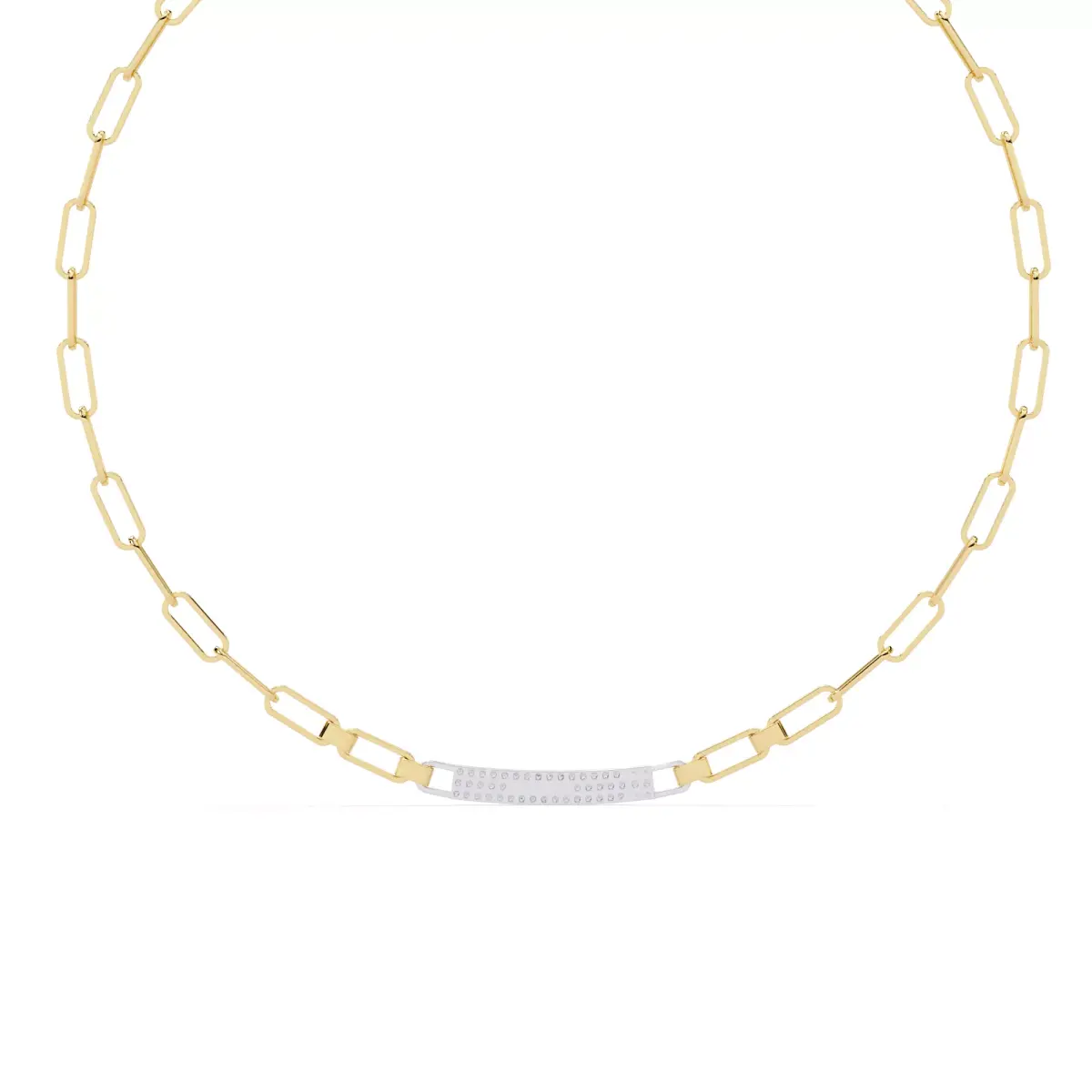 Design DetailsThe necklace features a rectangular link chain structure with uniform spacing.Links are designed for strength, flexibility, and balanced weight distribution.A center diamond bar element adds elegance and visual focus.Link connections are optimized for durability and smooth movement.Clean geometry supports accurate casting and consistent finishing.The CAD structure is optimized for professional jewellery manufacturing workflows.