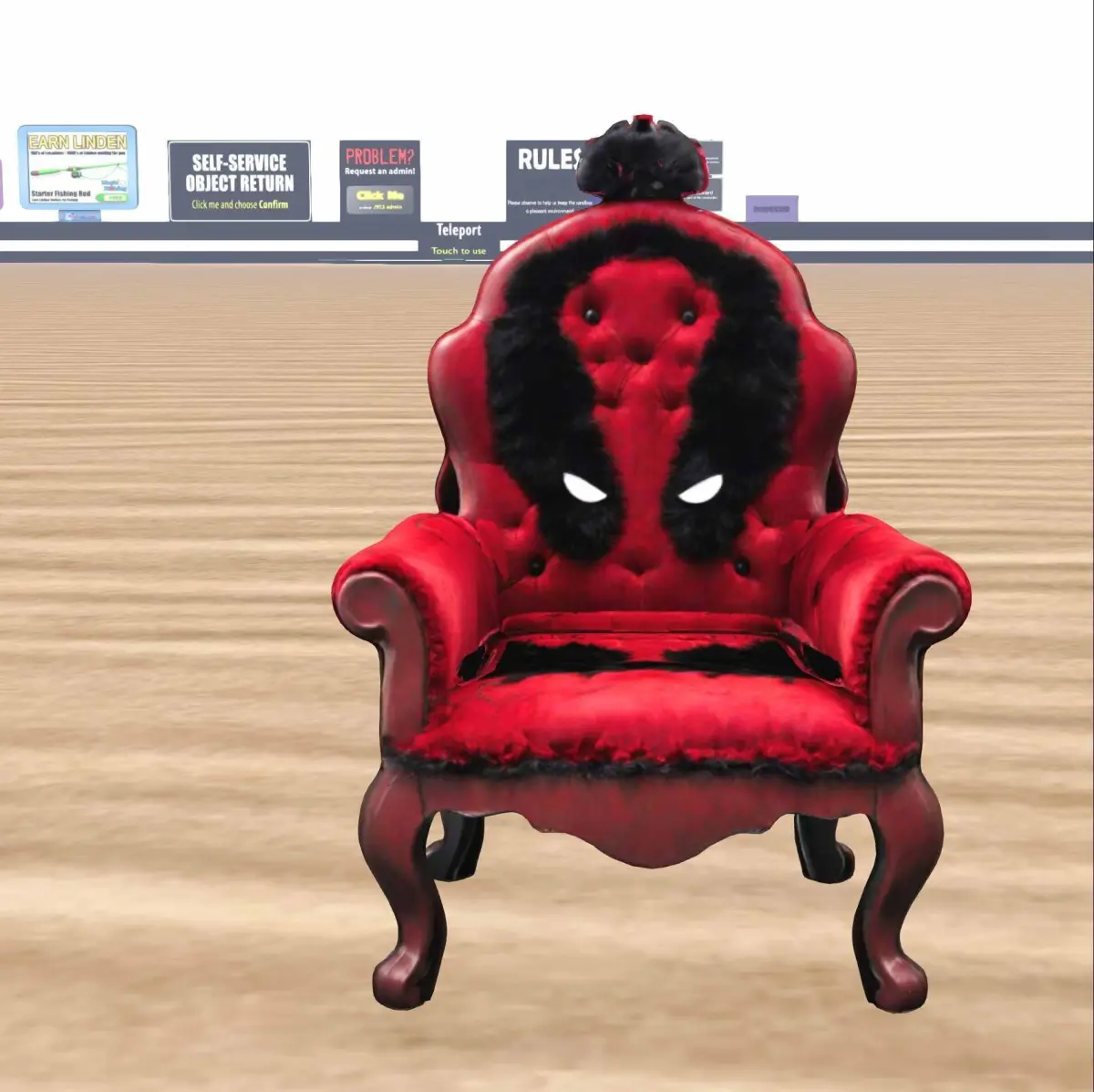 Luxury Red & Black Hero-Inspired Throne This high-quality 3D model of a hero-inspired luxury throne features rich red velvet upholstery, black fur details, and an iconic masked design. Perfect for use in games, animations, and 3D printing, this stylized armchair fits seamlessly into Second Life, Roblox, VRChat, Unity, and Unreal Engine. Ideal as a decorative furniture piece, game asset, or collector's item, this model brings an exclusive and bold aesthetic to any virtual environment.