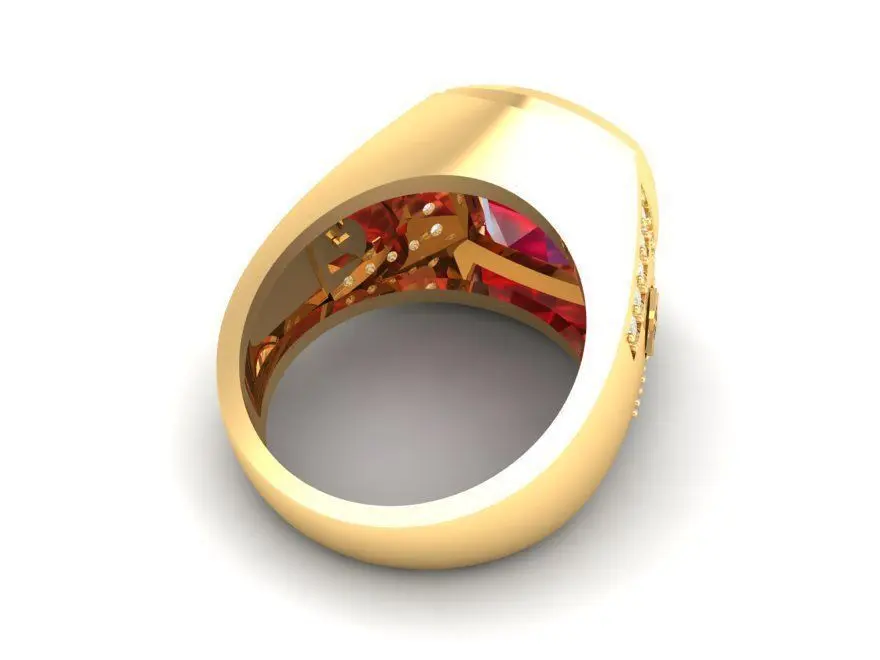 The model is ideal for 3D printing, CNC machining, and realistic rendering. It can be customized with various metals such as gold, silver, or platinum, and different gemstones like ruby, garnet, or spinel to match any jewelry collection or custom design request.