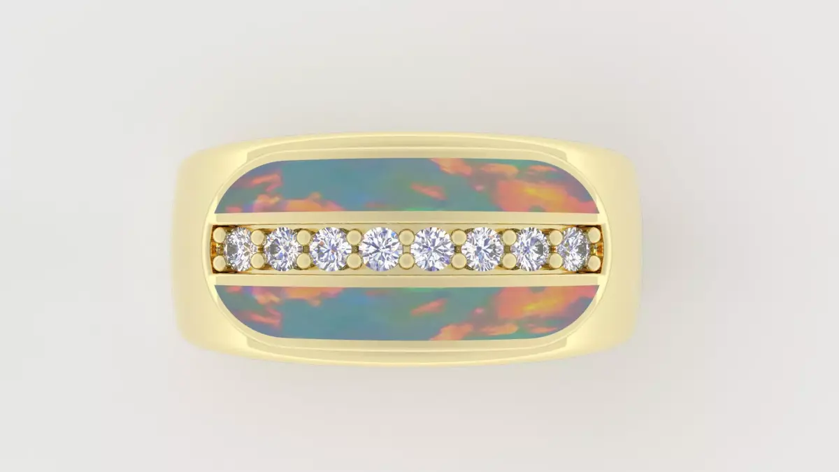 Elevate your jewelry collection with this stunning High-End Men's Ring, designed professionally in Matrix Gold. This 3D model features a sophisticated combination of fiery Opal inlays and a sparkling channel of round brilliant-cut diamonds.