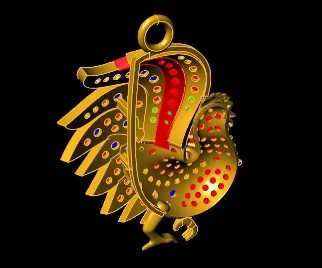 This luxury rooster pendant showcases a bold and artistic silhouette inspired by traditional Asian rooster motifs. The body is fully paved with round brilliant-cut stones to create intense sparkle from every angle, while the sweeping feathers are sculpted with layered details that enhance depth and movement. A contrasting gemstone is set at the eye to bring life and character to the design. The piece is both symbolic and visually striking, making it suitable for fine jewelry collections, zodiac pieces, and statement fashion accessories.