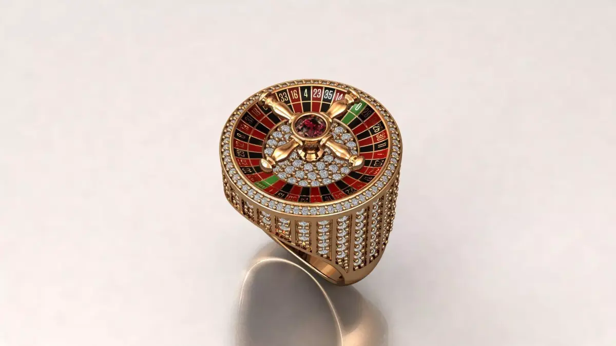 Luxury Roulette Ring 3D Model Gold Diamond Casino Jewelry