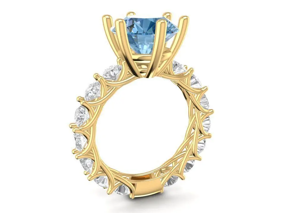 This luxury round cut engagement ring 3D model features a brilliant center gemstone surrounded by elegant baguette and round side stones. The classic yet modern design enhances light reflection, giving the ring an exquisite and luxurious look. Perfect for engagement, wedding, or fine jewelry collections.