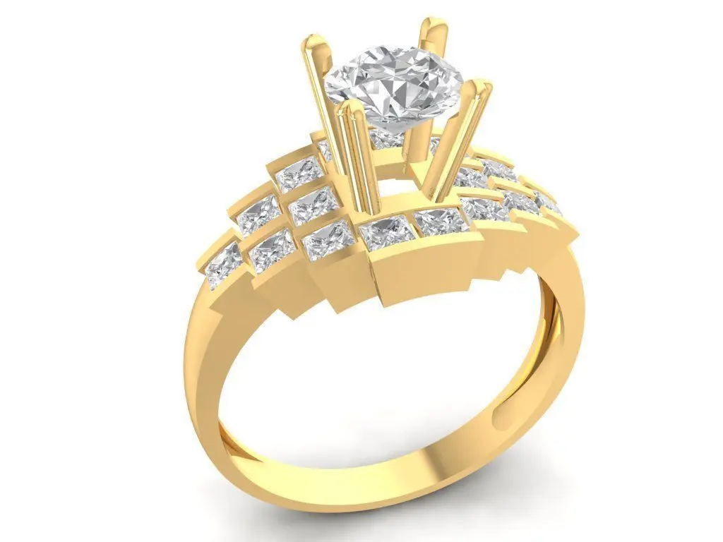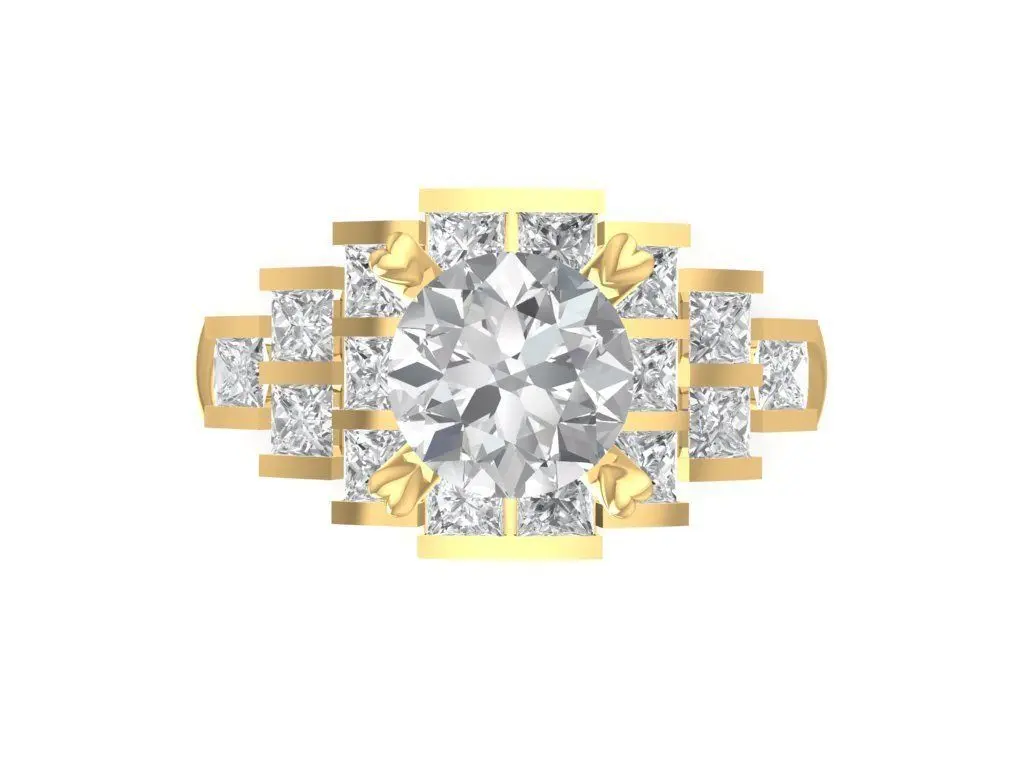This luxury womens engagement ring features a brilliant round center stone highlighted by baguette and round side diamonds on both shoulders. The 3D CAD model is designed with precision for jewelry production and 3D printing, ensuring accurate stone placement and realistic proportions. With its elegant combination of classic and modern details, this engagement ring makes a perfect choice for high-end jewelry collections. The model includes detailed dimensions and weight information making it practical for manufacturing or custom design adjustments.
