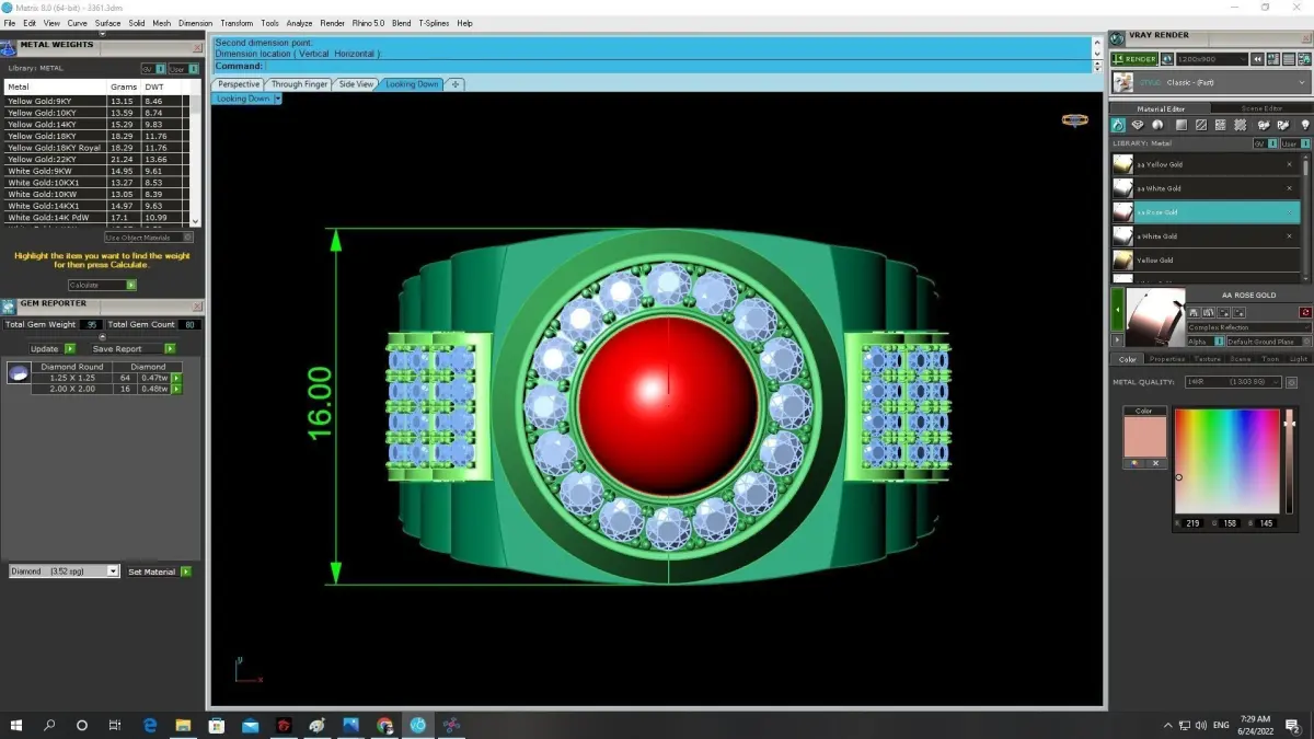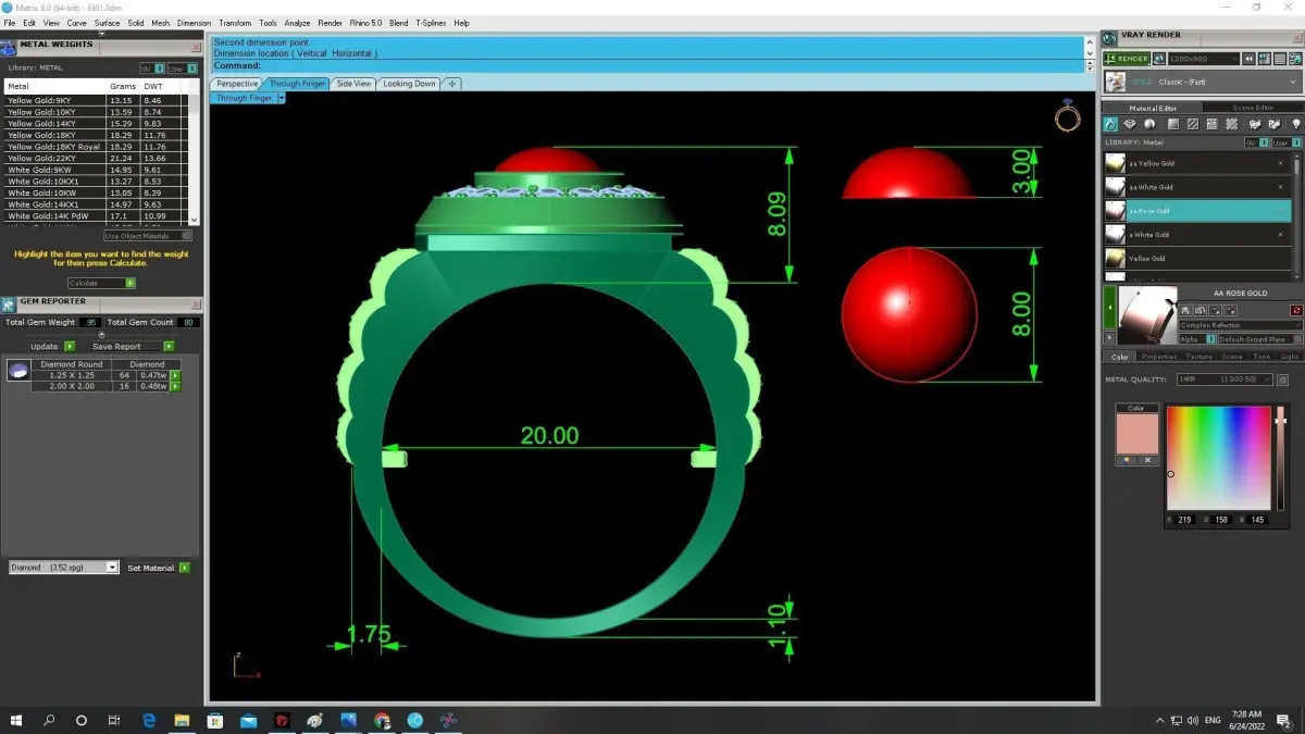 All essential technical information, including ring size, shank width, thickness, stone dimensions, stone count, and estimated metal weight, is clearly shown in the preview images. These details allow jewelers and manufacturers to accurately evaluate the model before casting or production.