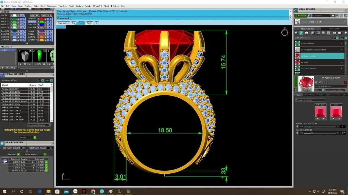 The 3D model is fully optimized for jewelry production, with accurate measurements, clean topology, and realistic tolerances for 3D printing and lost-wax casting. Prong thickness, stone seats, and pavé spacing are precisely crafted to support natural gemstones, lab-grown stones, or CZ. The interior of the band remains smooth and comfortable for daily wear.