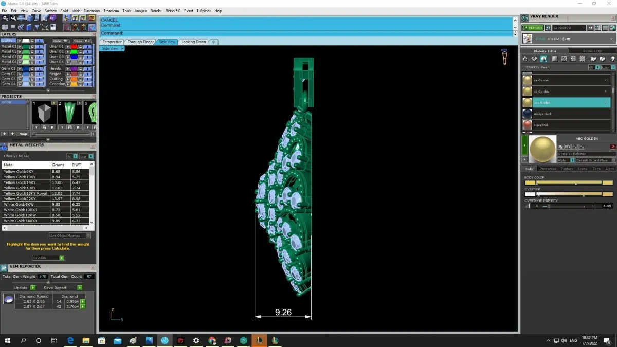 All dimensions, stone sizes, stone quantities, and estimated metal weight are clearly displayed in the preview images. The model is professionally constructed with clean topology and optimized thickness, ensuring excellent results for CNC machining, resin 3D printing, and lost wax casting.