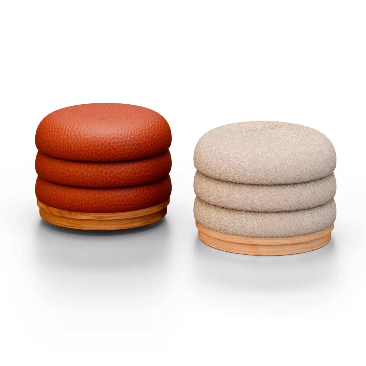 Add a touch of elegance and sophistication to your next design with this high-quality 3D model of a modern round pouf. Created with stunning attention to detail, this pouf features rich red leather and minimalist white fabric variations, making it the perfect fit for any luxury interior, modern living space, or commercial project. Photorealistic PBR textures – detailed leather grain & fabric weave