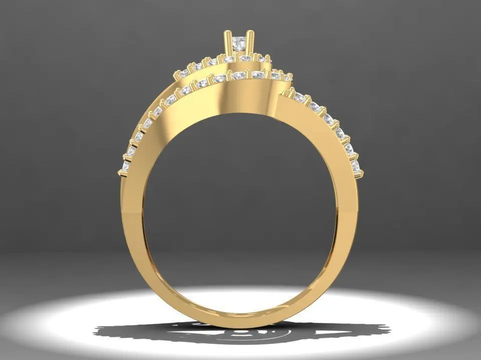 This 3D jewelry model features a luxurious double-band ring for women, showcasing a vivid red ruby center stone beautifully surrounded by sparkling diamonds. The double-layered band curves gracefully to highlight the center gemstone, creating a radiant and elegant look. Each detail is crafted with precision for perfect balance, comfort, and brilliance. The model is designed for high-end production in gold, platinum, or silver, and can be customized with ruby, sapphire, moissanite, or diamond as the main stone. Fully optimized for jewelry manufacturing and 3D printing, this model includes accurate dimensions, gemstone sizes, and clean geometry ready for casting or rendering.