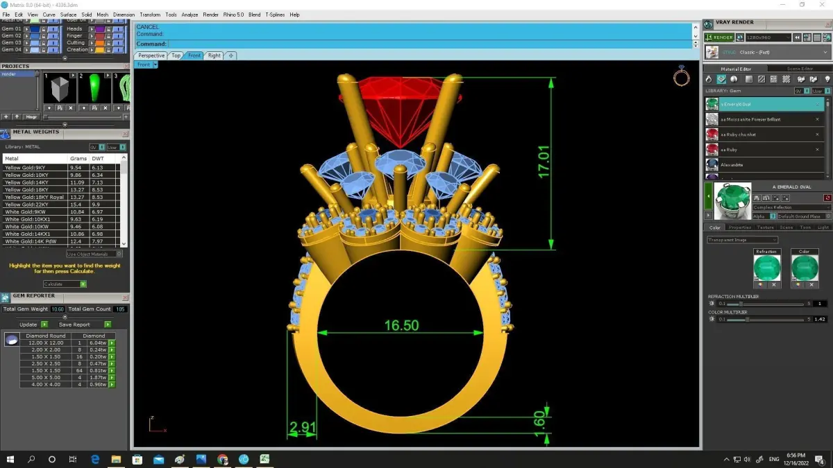 The ring is professionally engineered for fine jewelry production. All dimensions, stone sizes, stone quantities, and metal weight are clearly displayed in the preview images, ensuring accuracy for casting, stone setting, and finishing. The geometry is clean, well-structured, and optimized for manufacturing or further customization.
