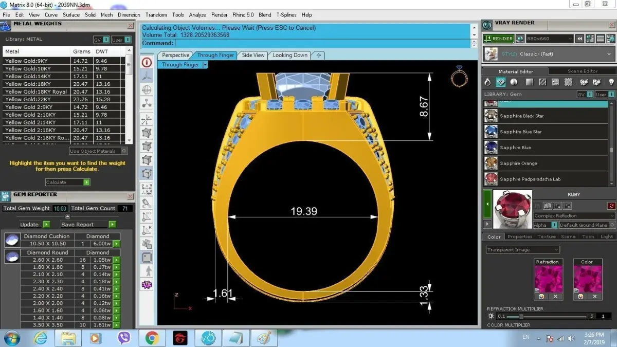 All gemstone placements, gold thicknesses, and proportions are accurately modeled for 14K, 18K, and 22K gold casting.