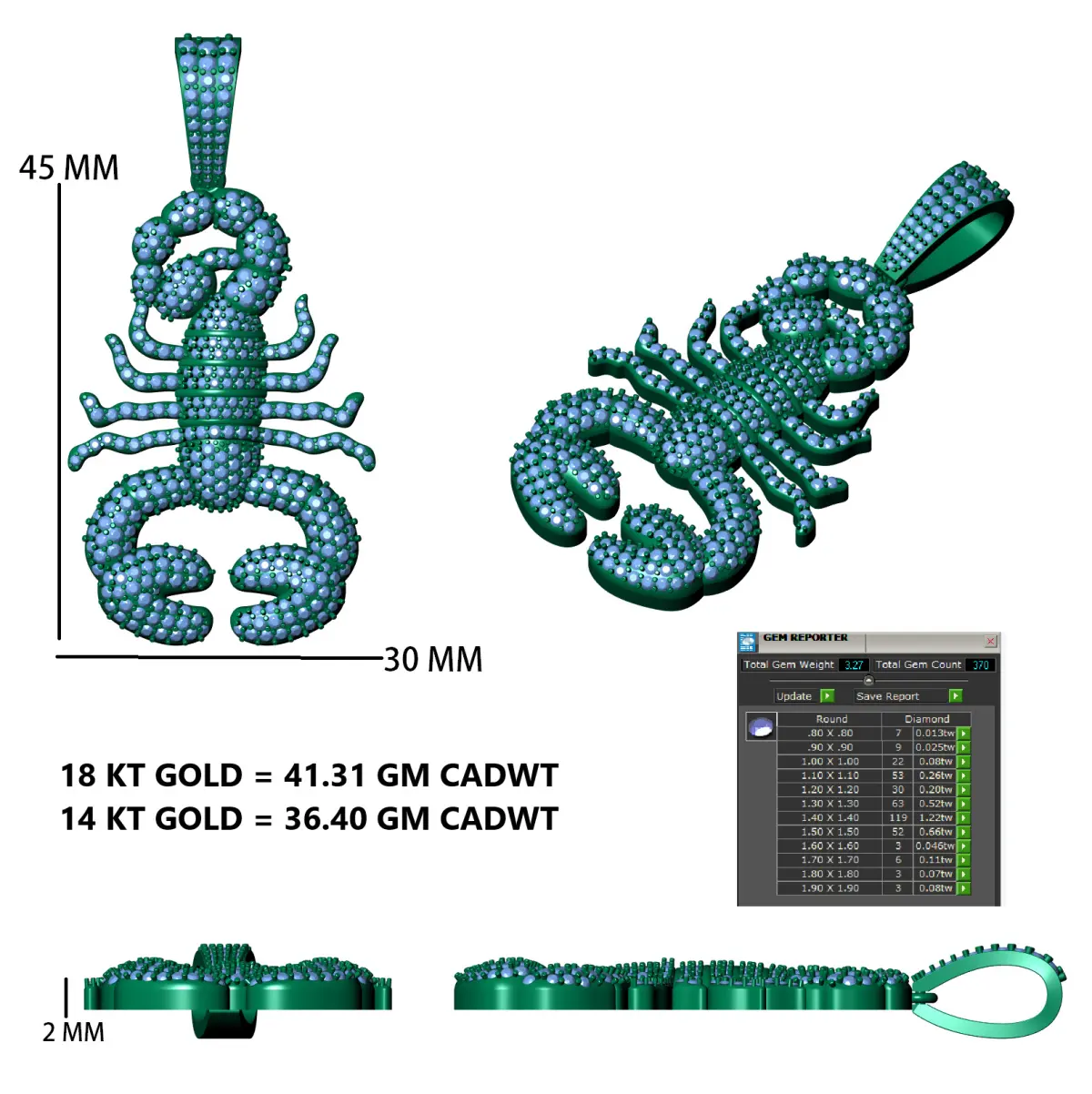 The Scorpion Diamond Pendant is a statement piece crafted for those who embrace power, resilience, and transformation. Inspired by the mystical and fierce nature of the scorpion, this fully iced-out pendant is designed to exude dominance and luxury. The piece is meticulously set with 370 round diamonds, bringing a mesmerizing sparkle to the detailed scorpion body, claws, and tail.