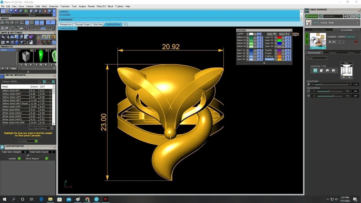 All essential technical specifications, including exact dimensions, thickness, and estimated metal weight, are clearly displayed in the preview images. This allows jewelers and manufacturers to accurately evaluate the model before casting.