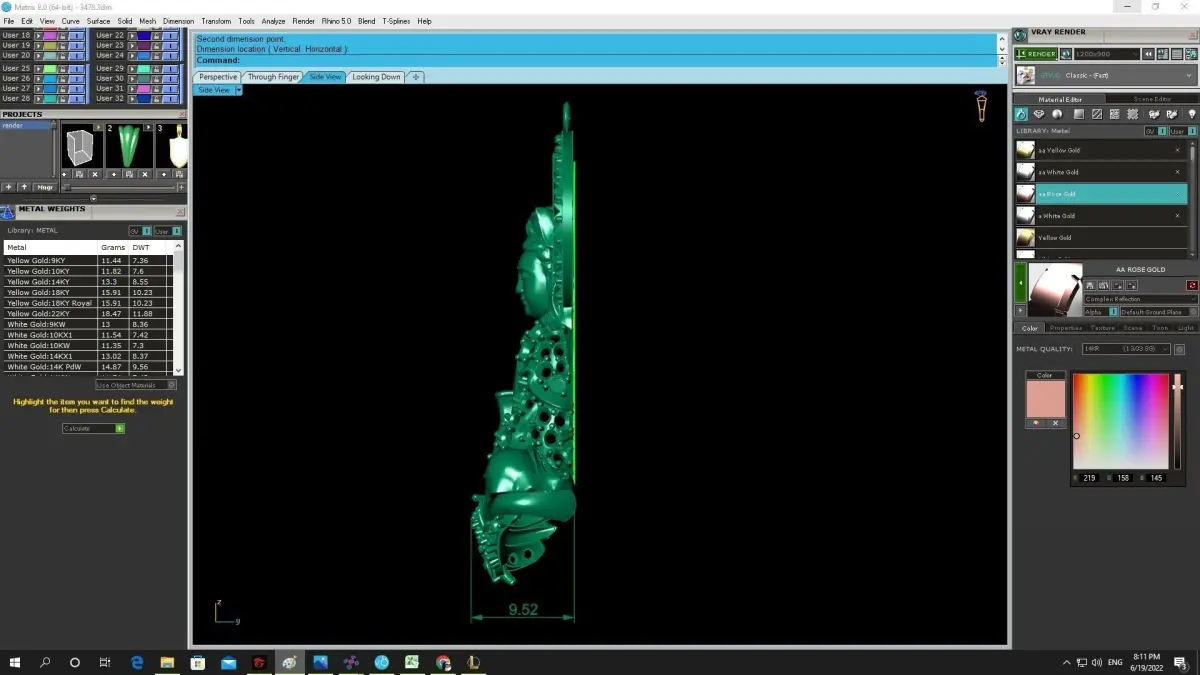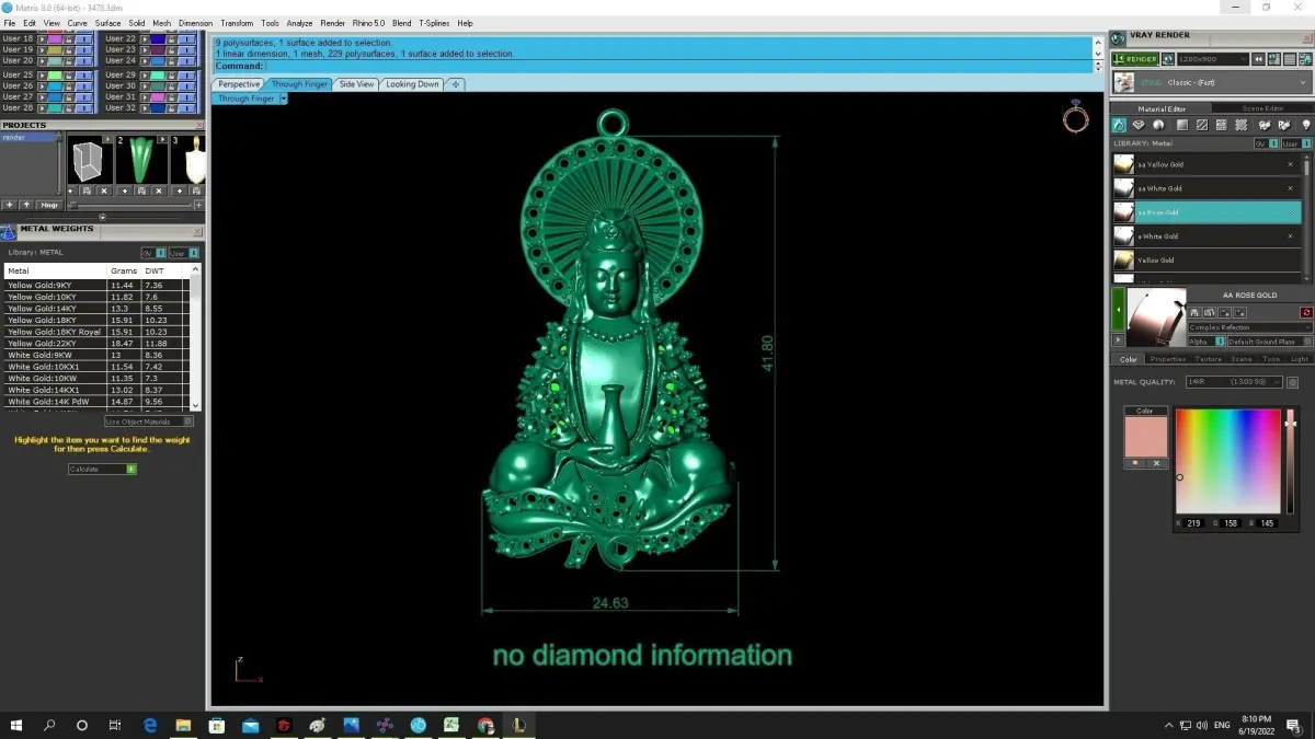 This professional 3D jewelry model is fully prepared for casting workflows. Detailed technical images are included to clearly present dimensions, estimated metal weight, and structural specifications, allowing jewelers and manufacturers to accurately evaluate production feasibility and material requirements.