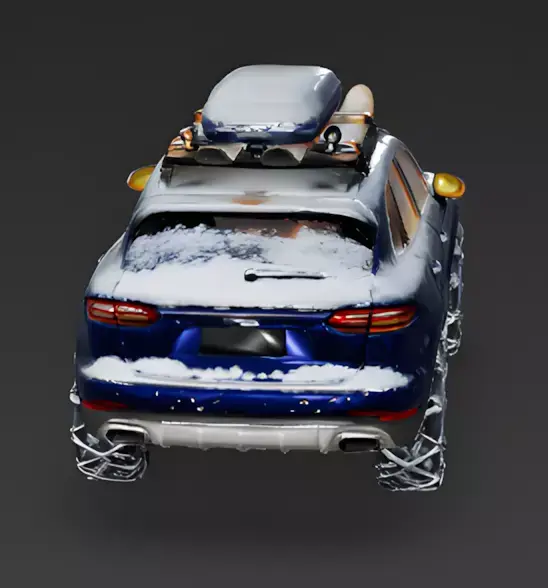The Overall Concept This asset is a high-end luxury SUV, designed for winter vacations and trips to the mountains. It combines a sporty, expensive look with practical travel equipment, making it perfect for a driving game or a holiday scene.