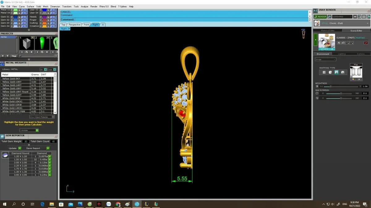 All dimensions, stone sizes, volume, and estimated metal weight are clearly shown in the preview images. The model is fully solid, watertight, and optimized for precious metal casting in gold or silver.