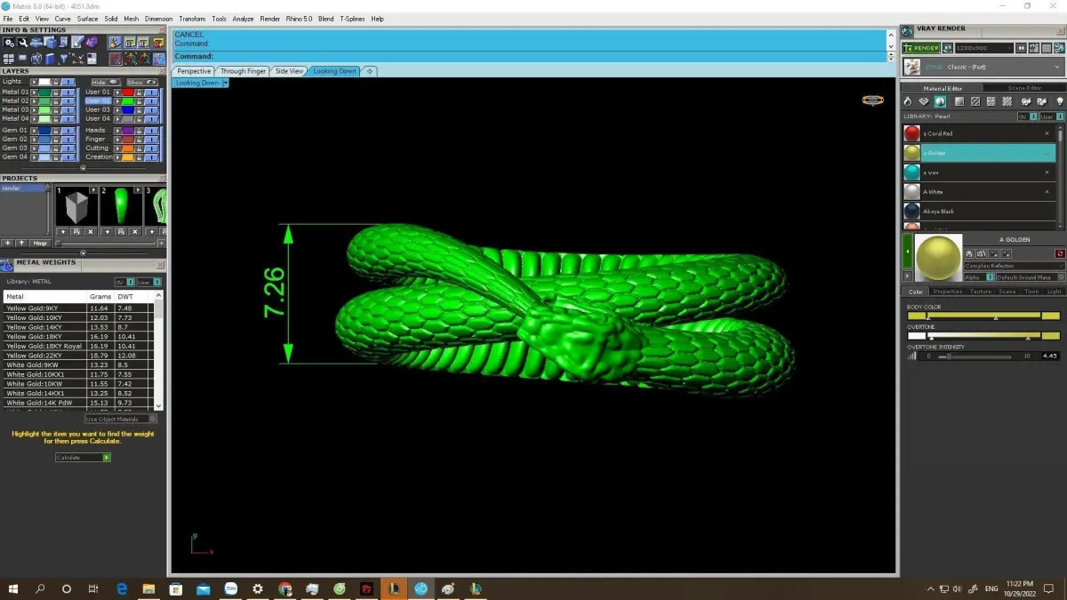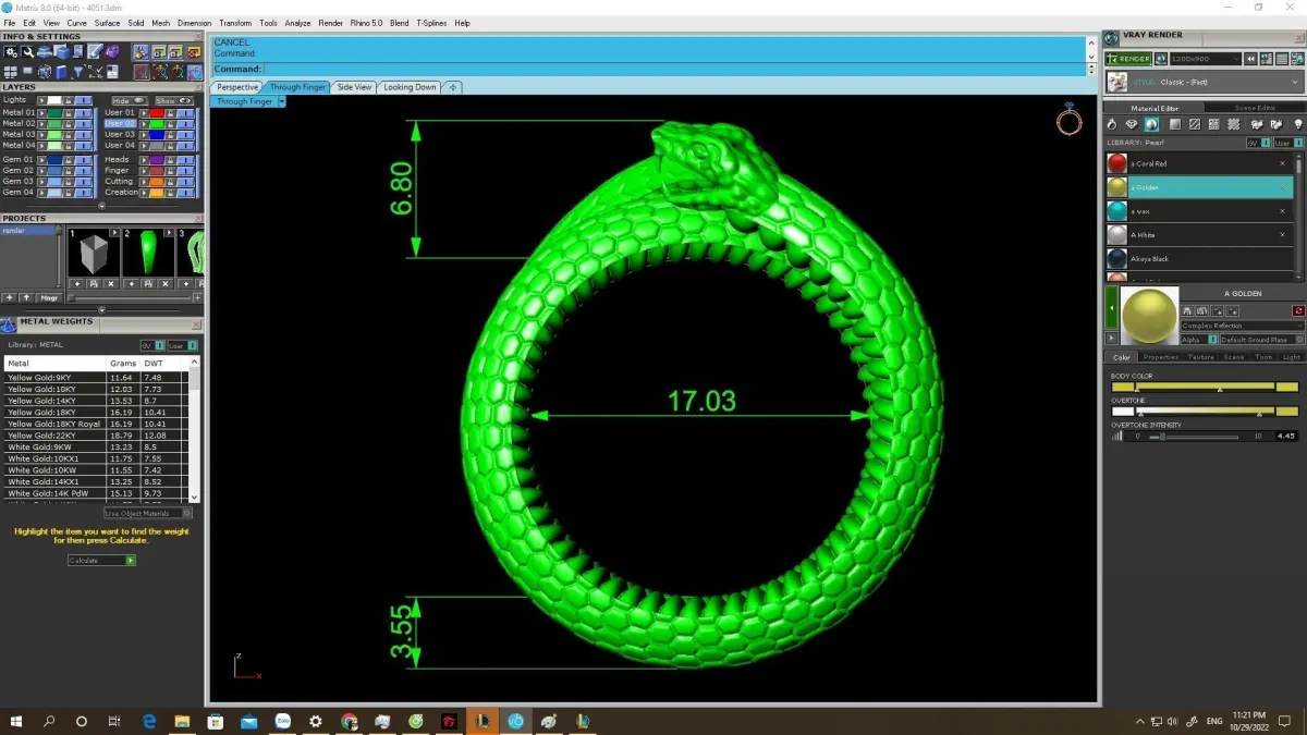 All preview images include complete technical information such as dimensions, ring size, and estimated metal weight, supporting accurate casting and production planning.