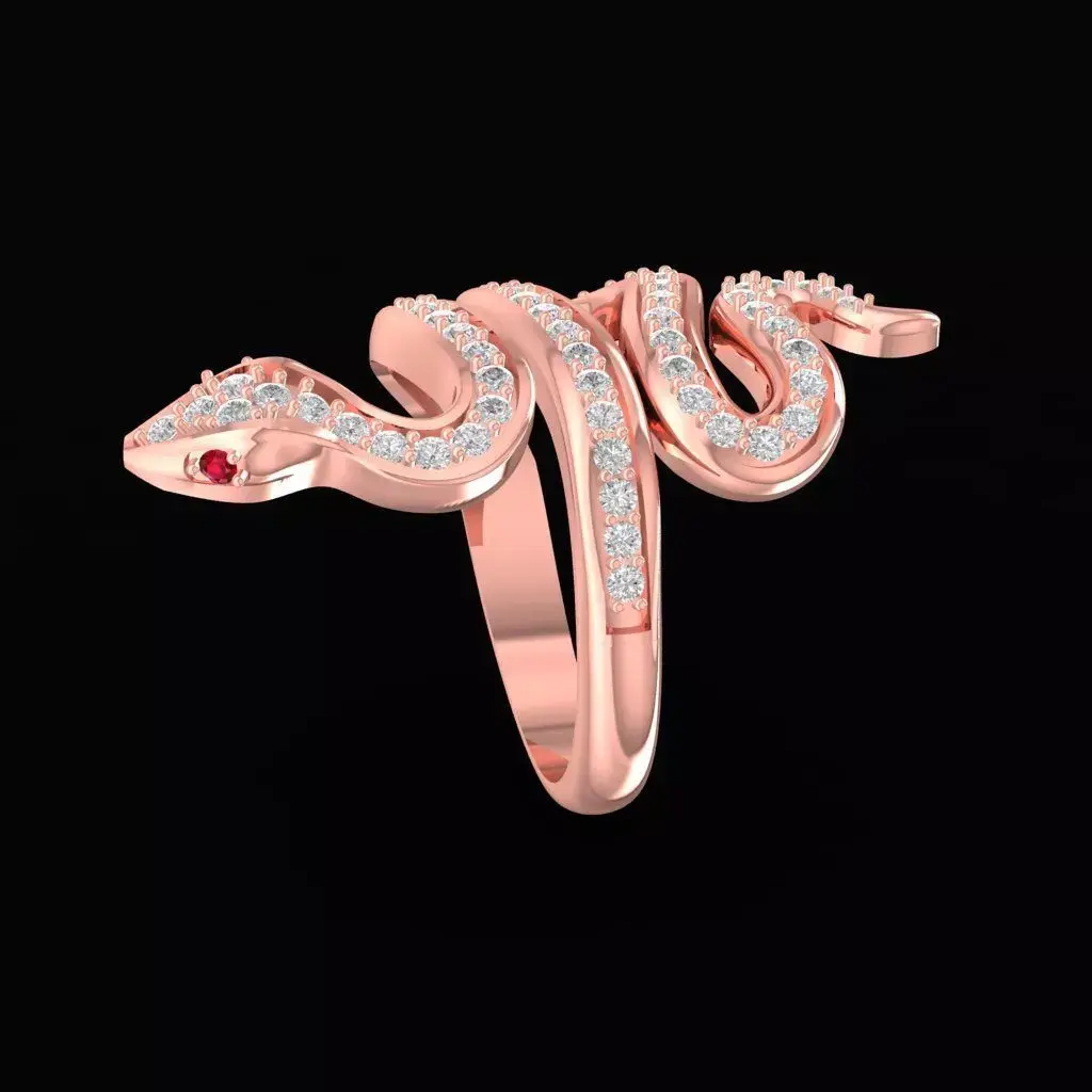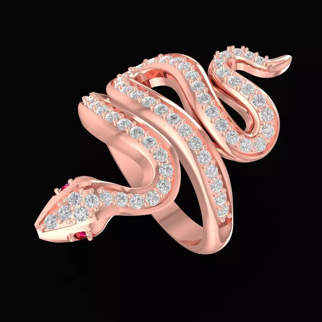 This luxury snake shape diamond men ring features a winding serpent design with pavé-set stones along the body and ruby eyes. The 3D model is fully detailed with accurate dimensions, ideal for gold or silver casting. Supplied in STL and 3DM formats, it is perfect for jewelers, CAD designers, and custom jewelry makers seeking bold and symbolic creations.