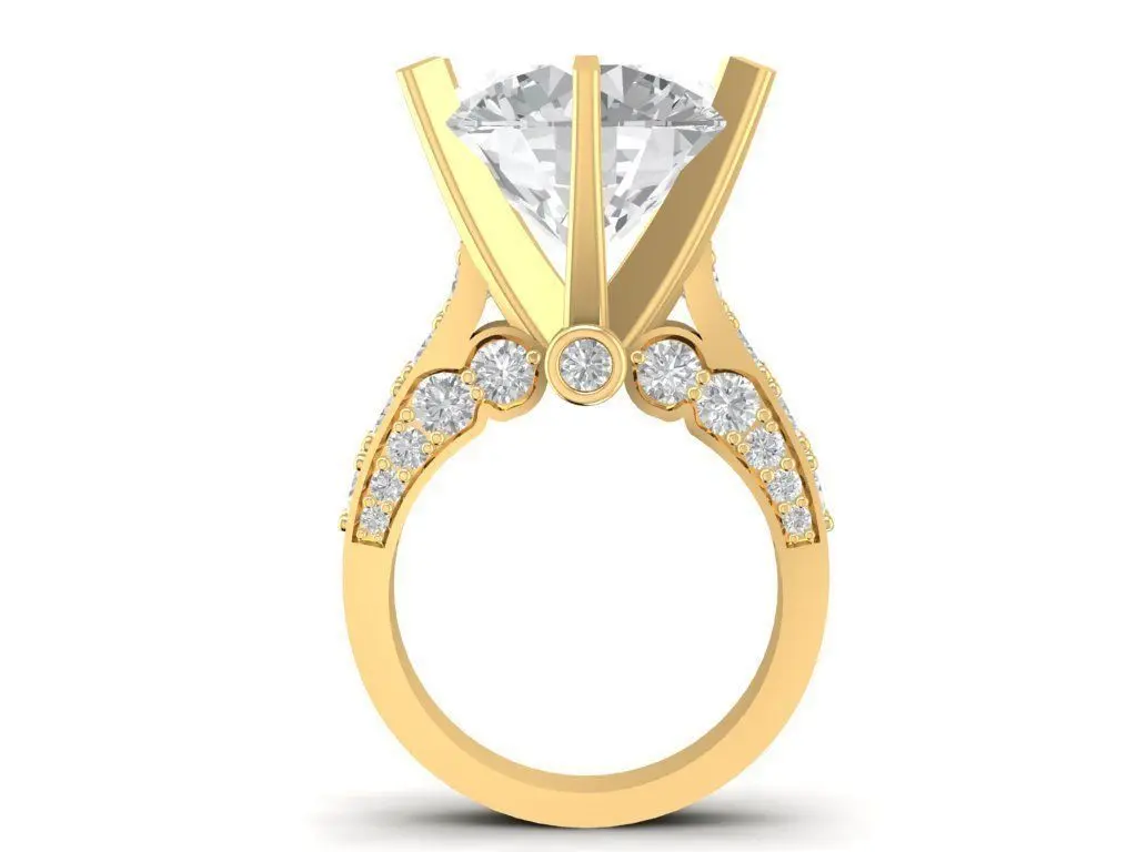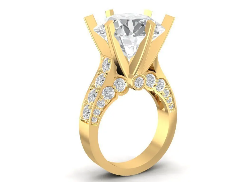 This luxury solitaire diamond engagement ring 3D model showcases a stunning center stone held by elegant prongs that maximize brilliance and light reflection.