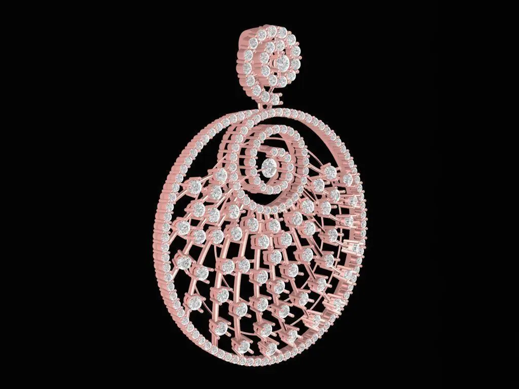 This luxury spiral diamond pendant 3D model features an elegant circular swirl design fully covered with round brilliant diamonds.