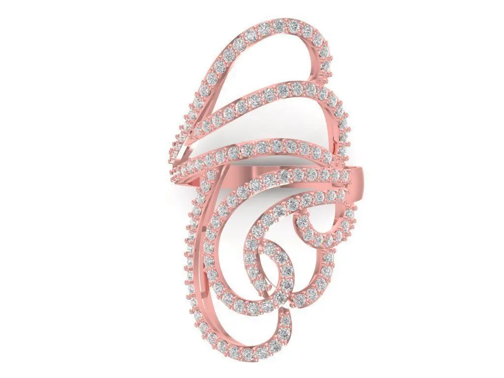 This 3D model showcases a luxury spiral diamond women ring designed with modern elegance and fluid movement. The ring features a dynamic spiral structure gracefully wrapping around the finger, fully set with brilliant-cut diamonds for a sparkling and sophisticated look. Its artistic open design symbolizes energy, creativity, and timeless beauty.