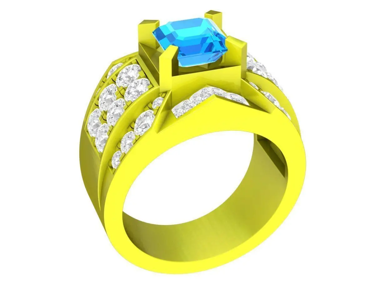This 3D jewelry model presents a luxury ring design featuring a square center gemstone secured by a bold prong setting. The centerpiece is elevated to create a strong focal point, enhancing brilliance and visual depth from multiple viewing angles.