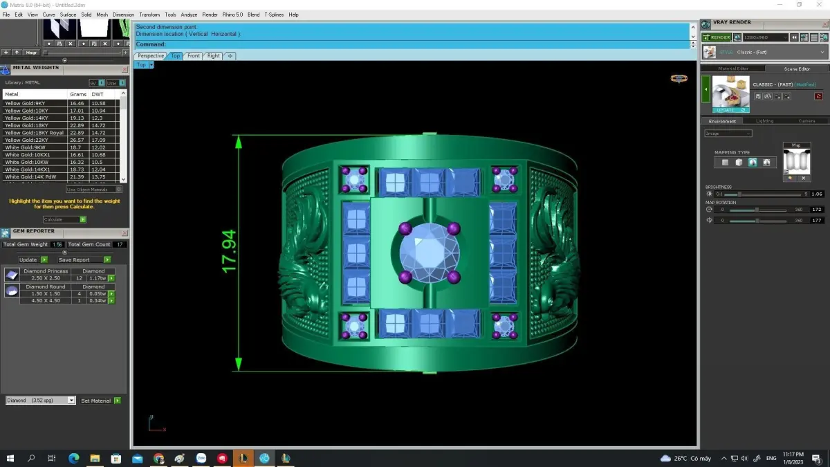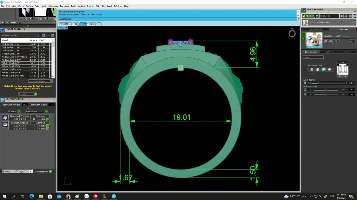 This 3D jewelry model is professionally designed and optimized for casting and stone setting. All images include complete technical details such as dimensions, stone sizes, stone quantities, and estimated metal weight, making it suitable for gold, silver, or other precious metals.