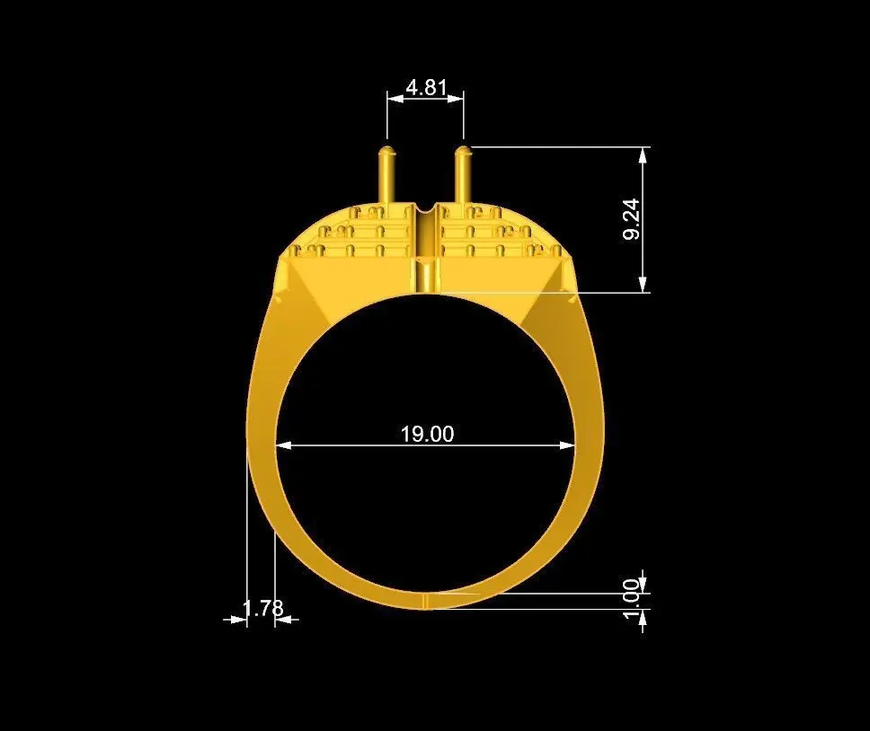 The central gemstone is surrounded by meticulously arranged round-cut diamonds, creating a dazzling light reflection on every angle. Designed in CAD with accurate proportions, this model is fully optimized for 3D printing, CNC milling, and rendering. Dimension screenshots and technical views are included to ensure precise production scaling and accurate stone fitting.