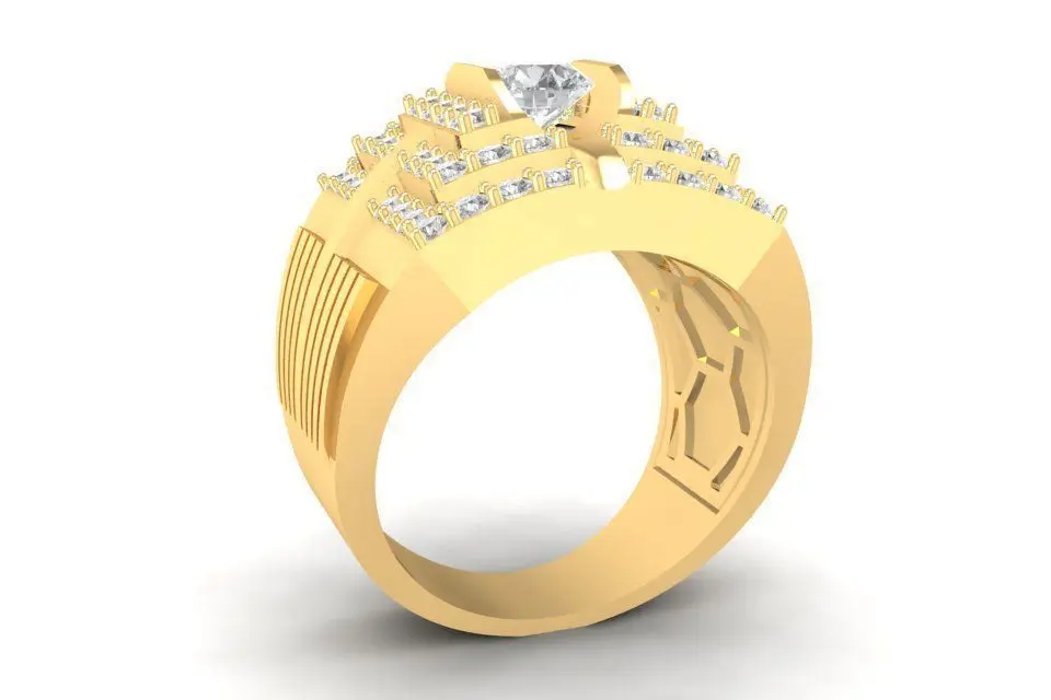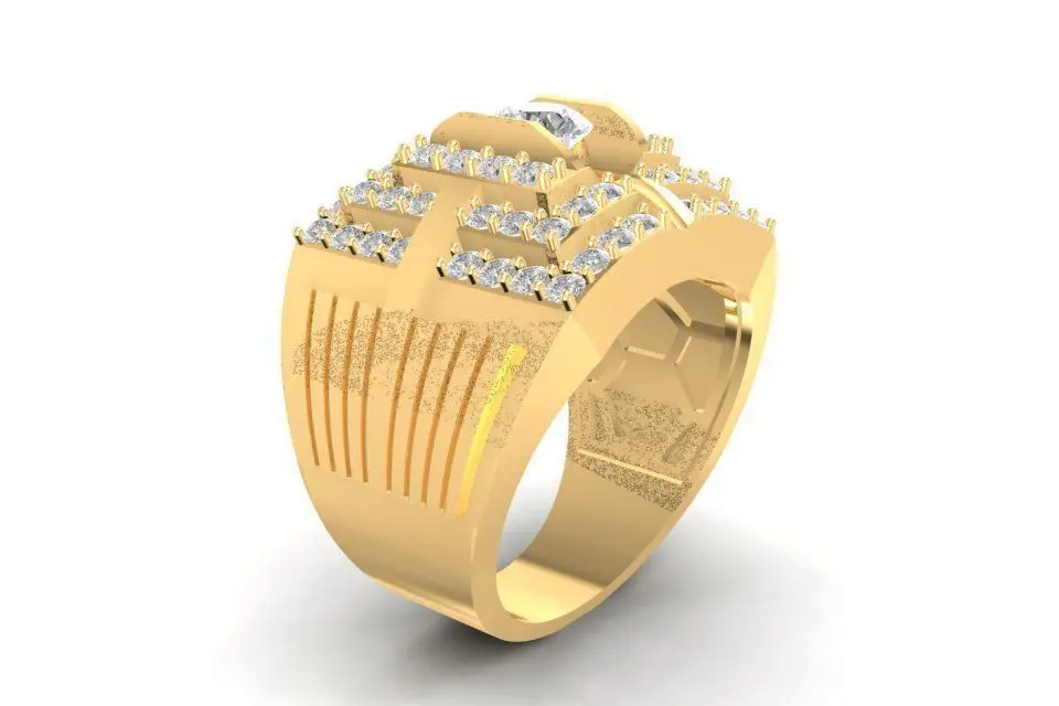 This 3D jewelry model showcases a luxury men’s ring featuring a bold square design with multiple rows of brilliant-cut and princess-cut diamonds. The raised center stone enhances its masculine presence, while the side stones create a powerful sparkle that reflects strength and prestige. The solid band and detailed craftsmanship make it perfect for those who appreciate fine jewelry with a statement look. This 3D model is production-ready, suitable for gold, silver, or platinum casting, and supports both natural diamonds and cubic zirconia. All preview renders display accurate proportions, detailed stone settings, and realistic dimensions. The file is optimized for professional jewelers, CAD designers, and 3D printers who seek a high-quality, editable, and watertight jewelry design.