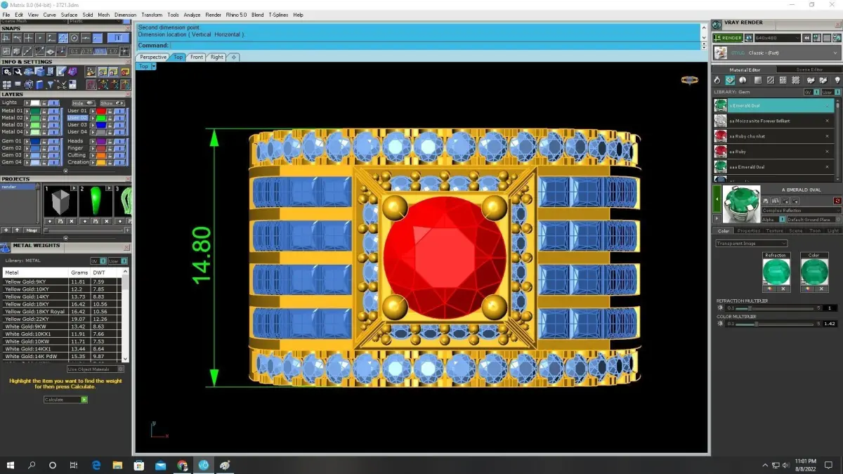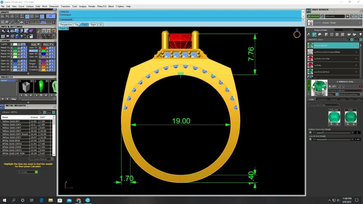 All technical specifications including ring size, metal weight, stone dimensions, and diamond quantities are clearly modeled and displayed in the preview images. The geometry is clean, watertight, and optimized for jewelry production, stone setting, and polishing.