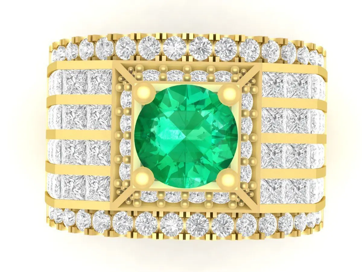 This luxury square emerald halo diamond ring 3D model is designed with a bold and masculine structure, combining a strong geometric form with refined pavé diamond details. The center stone is a square-cut emerald, securely held by a classic prong setting, surrounded by a halo of round diamonds that enhance brilliance and visual depth.