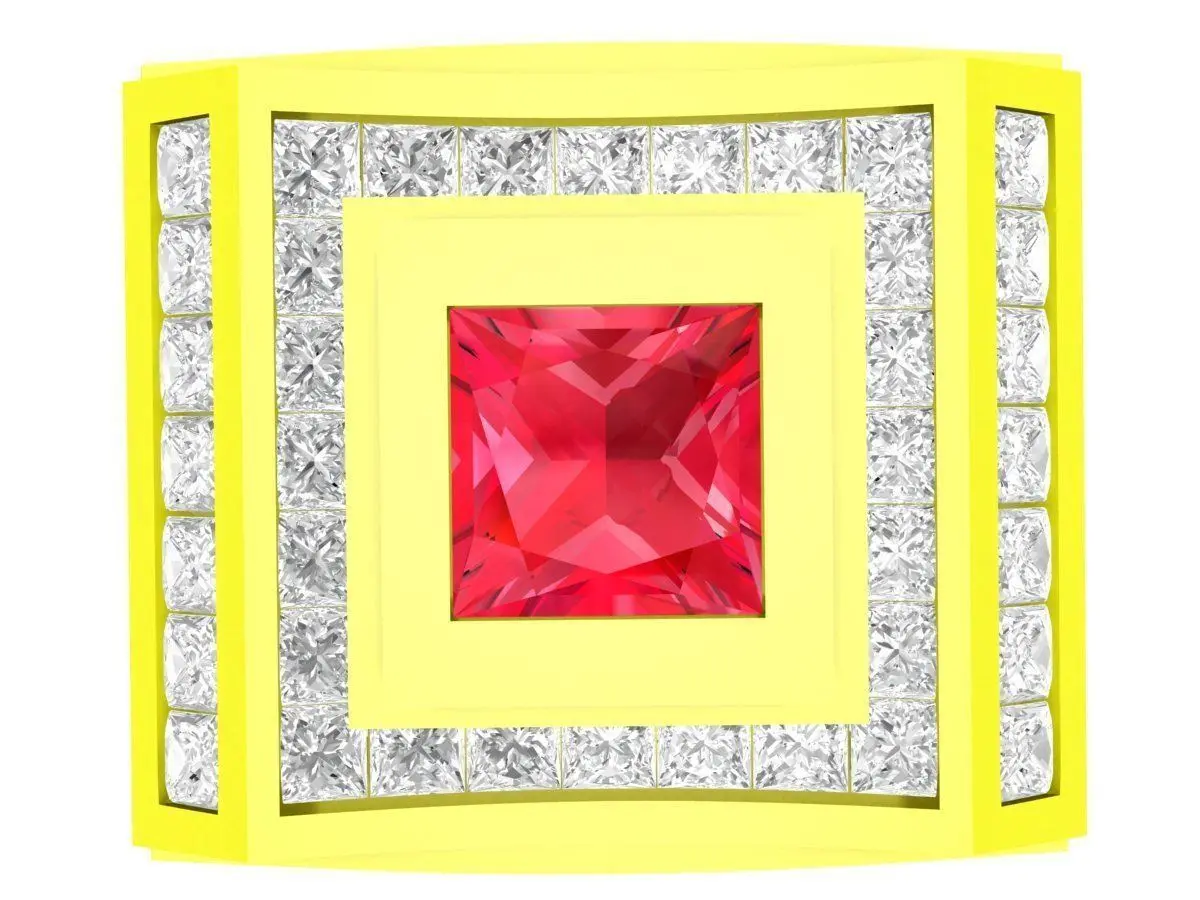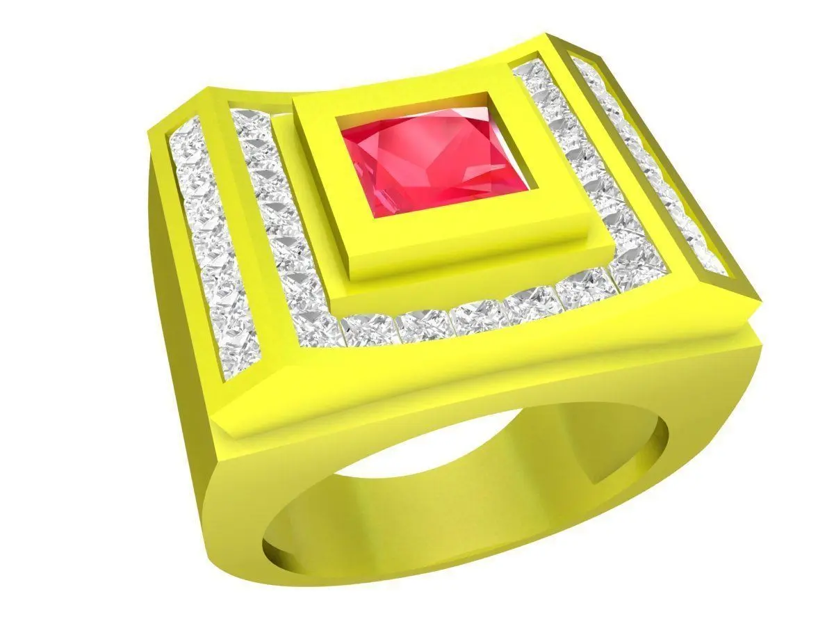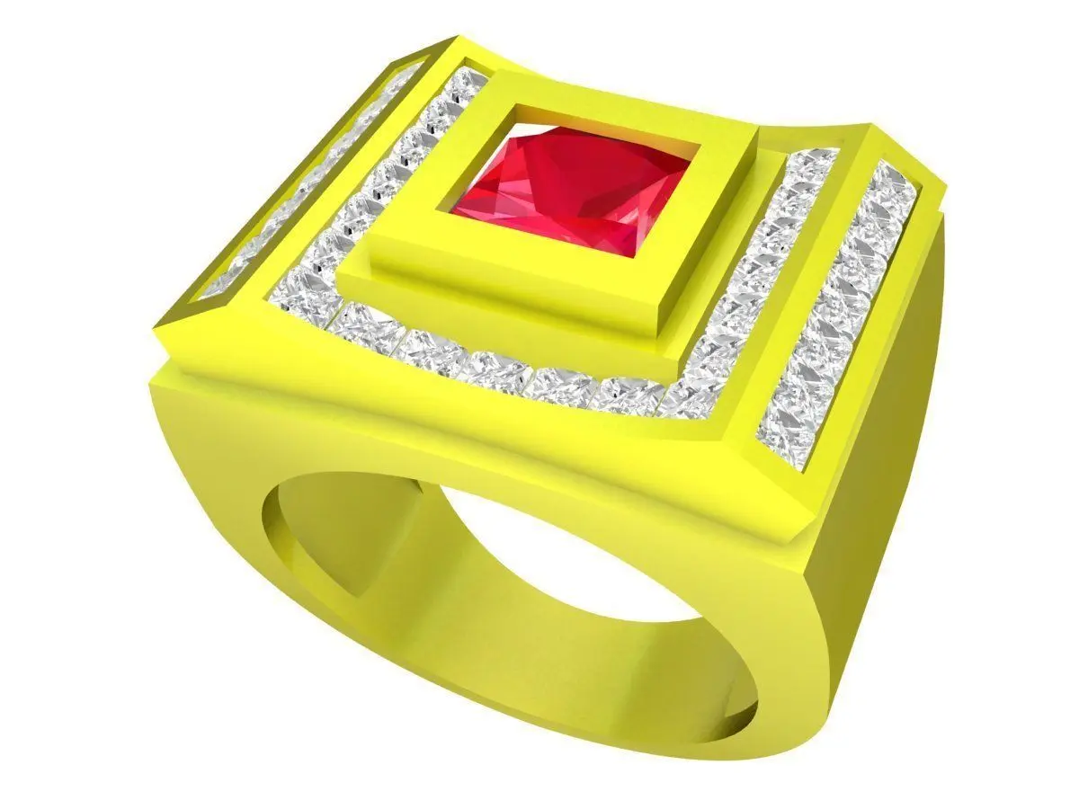 This luxury square gemstone men’s ring features a bold geometric design with a prominent square center stone surrounded by clean, structured pavé accents. The strong proportions and layered surfaces give the ring a powerful and modern appearance, ideal for masculine and statement jewelry collections.