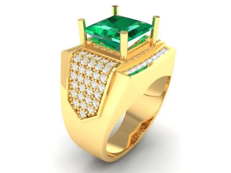This luxury square gemstone signet ring for men features a bold central princess-cut gemstone surrounded by brilliant diamonds. The geometric structure enhances the masculine elegance and royal charm of the design.