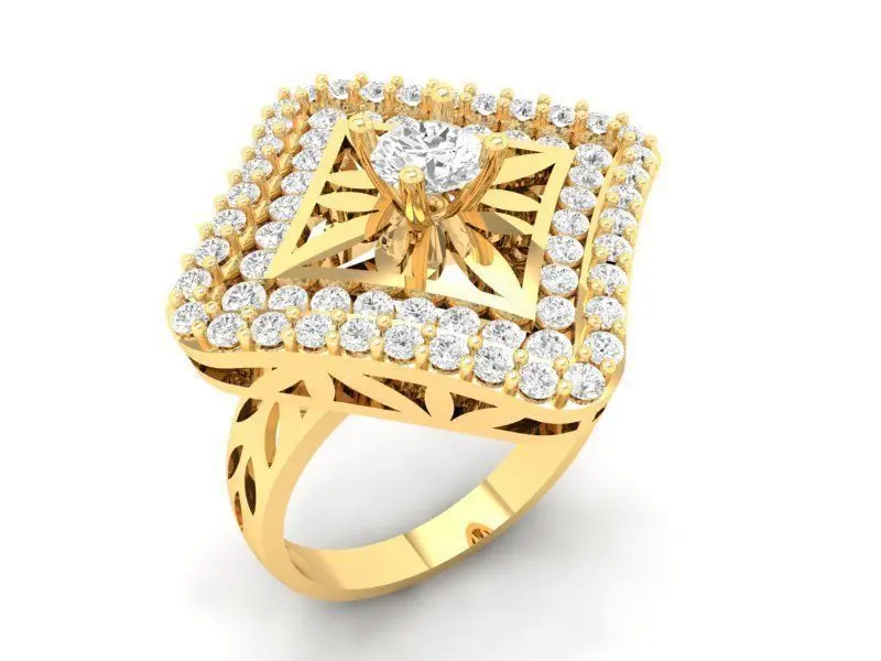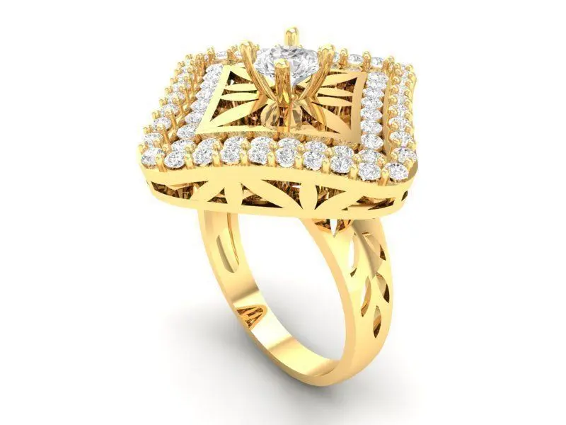 This elegant square halo diamond ring is designed for women who appreciate refined geometry and luxurious sparkle. The ring features a raised square top richly adorned with multiple round diamonds, creating a radiant halo effect that enhances brilliance from every angle. The elevated structure provides additional depth and dimension, while the openwork gallery ensures reduced weight without compromising strength. Perfect for engagement, anniversary, or fine jewelry collections, this 3D model includes clean topology, accurate proportions, and complete measurements for professional production.