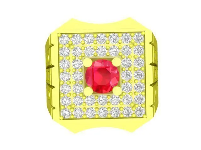 This 3D jewelry model presents a luxury men’s ring featuring a bold square halo design. The centerpiece is a prominent square gemstone set at the center, surrounded by multiple small round stones arranged in a symmetrical halo pattern, creating a strong and masculine appearance.