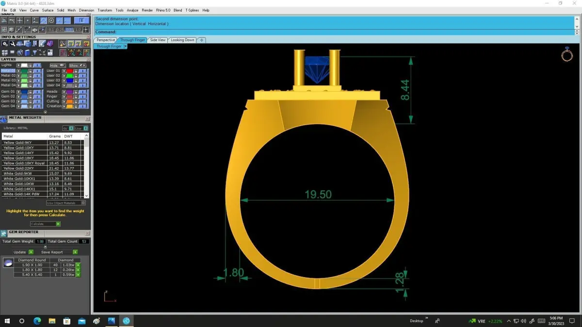 All dimensions, stone sizes, and technical specifications are clearly shown in the preview images. This model is intended for jewelry casting and rendering purposes only and is not suitable for CNC machining.