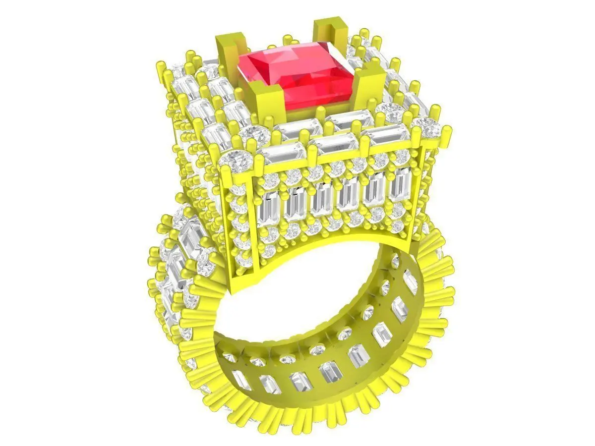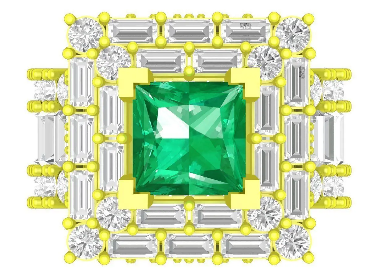 This luxury square halo gemstone ring 3D model showcases a bold architectural design featuring a prominent square-cut center stone surrounded by multiple layers of precision-set accent stones. The elevated structure and symmetrical layout create a strong visual presence, ideal for high-end men’s statement jewelry.