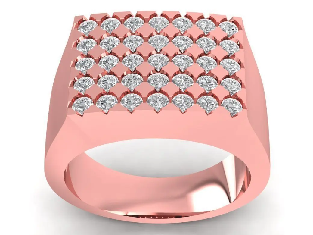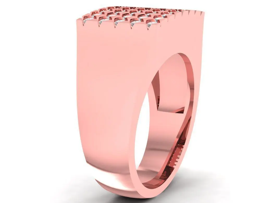 This luxury square pave diamond men ring showcases a sophisticated and bold design that symbolizes confidence and success. The ring features a flat-top surface encrusted with multiple rows of round-cut diamonds, creating an intense sparkle that catches every eye. Its geometric structure and smooth finishing provide a perfect harmony between strength and refinement. Ideal for confident men who appreciate premium craftsmanship and elegant modern jewelry. The 3D model includes precise dimensions and detailed gemstone settings, suitable for professional jewelry manufacturing or photorealistic rendering.