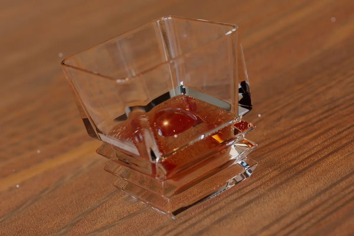 All-in-one. Heavy, unusual square whiskey drinking glasses (10oz / 300ml) with liquid, bubbles and spherical ice.Created in Cinema 4D, rendered in Redshift but also ported to V-ray and ArnoldReference:thedecorclub [dot] in/products/luxury-square-rock-whiskey-glass