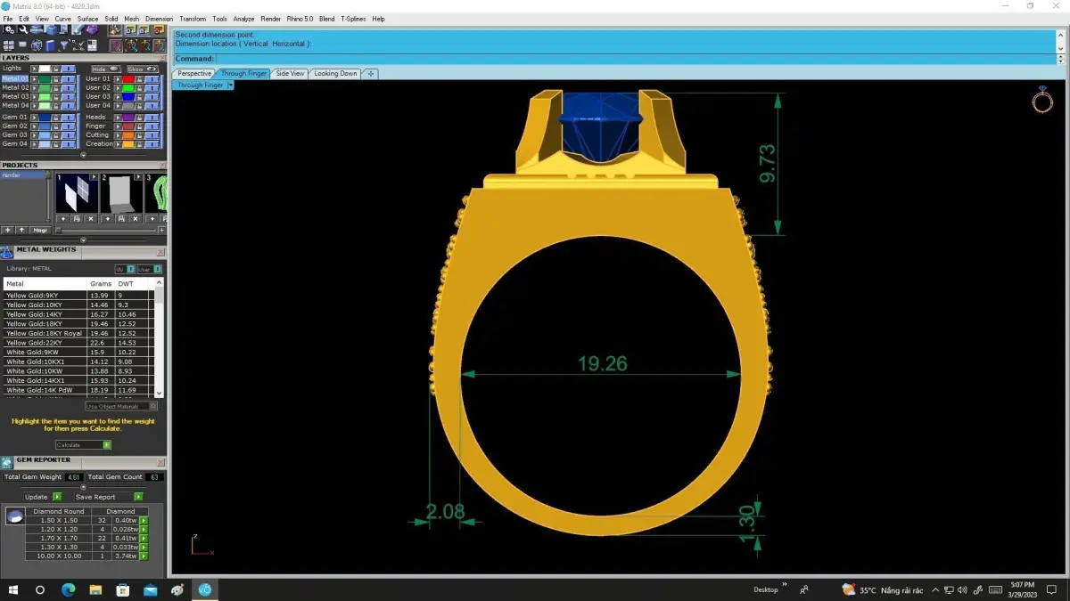 The wide tapered shank is decorated with refined surface detailing, adding depth and visual strength while maintaining balance and comfort. Clean topology, precise stone seats, and well-defined edges make this model fully suitable for casting, rendering, and professional manufacturing. All dimensions, stone sizes, and construction details are clearly shown in the preview images for accurate technical assessment.