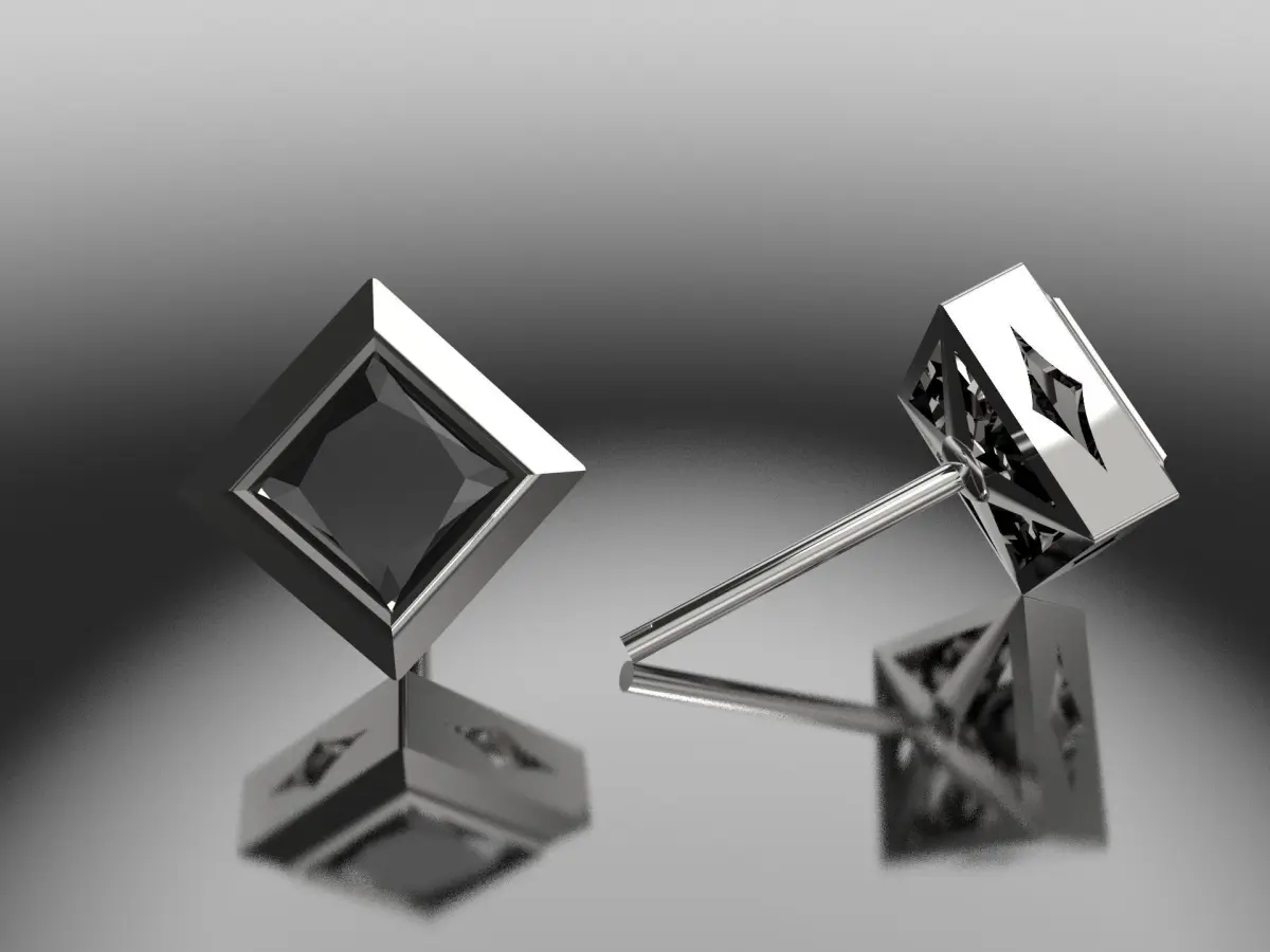 Introducing trendy Square studs 5mm gem for a bezel setting, checked in Magics and printed STL format. You get a designer stud model + elegant screw backings for free %The model is tested, printed, and cast in gold.