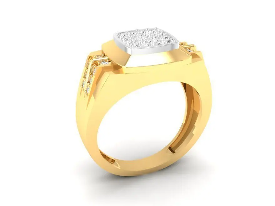 This 3D model showcases a luxury men's ring with a bold square face and elegant diamond pavé design. The surface is fully covered with small brilliant-cut stones, enhancing its masculine and premium appearance. Each edge of the ring is refined with side grooves for extra brilliance, giving the piece both strength and sophistication.