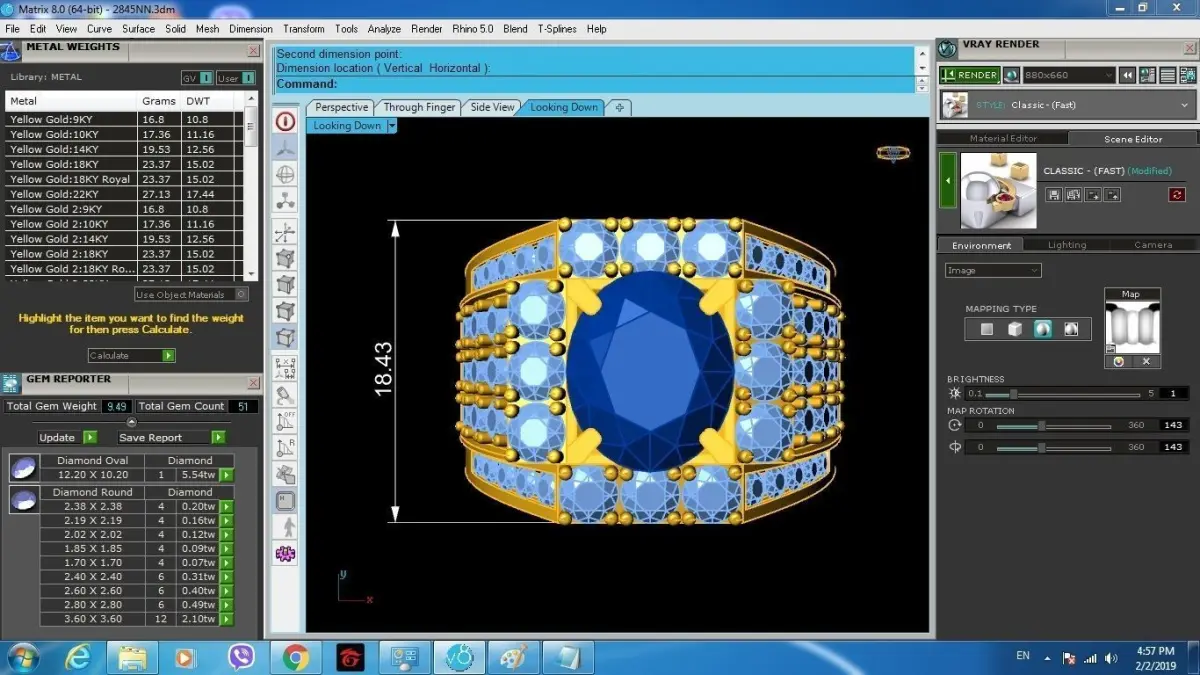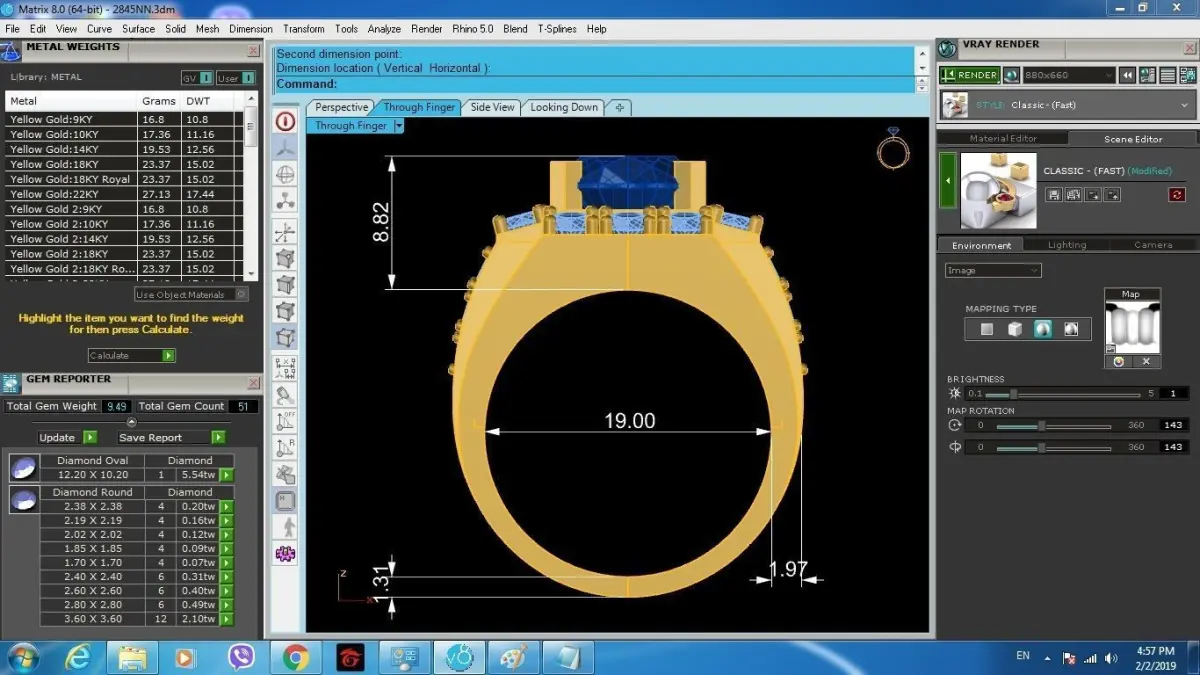The CAD model is created with high precision, including accurate gemstone seats, prong settings, and ring dimensions. It is optimized for 3D printing and CNC production in 14K, 18K, or 22K gold as well as platinum. The center stone can be customized with ruby, sapphire, emerald, or diamond, while the side stones can be set with diamonds, moissanite, or cubic zirconia.