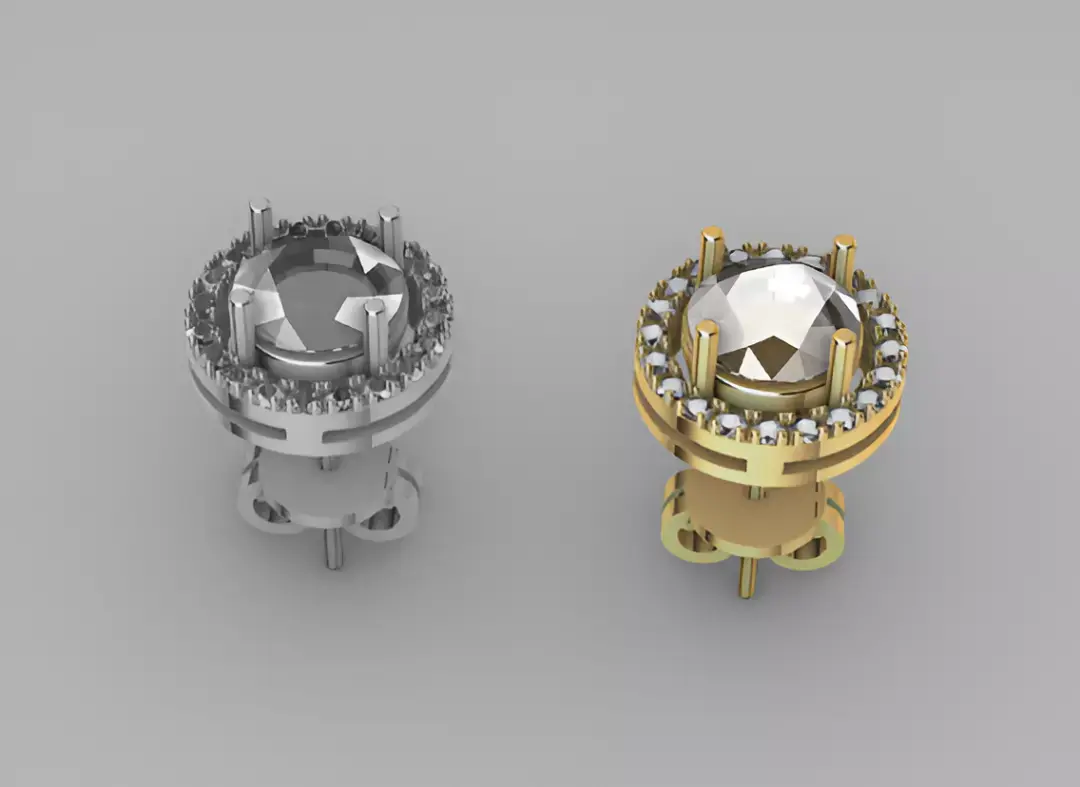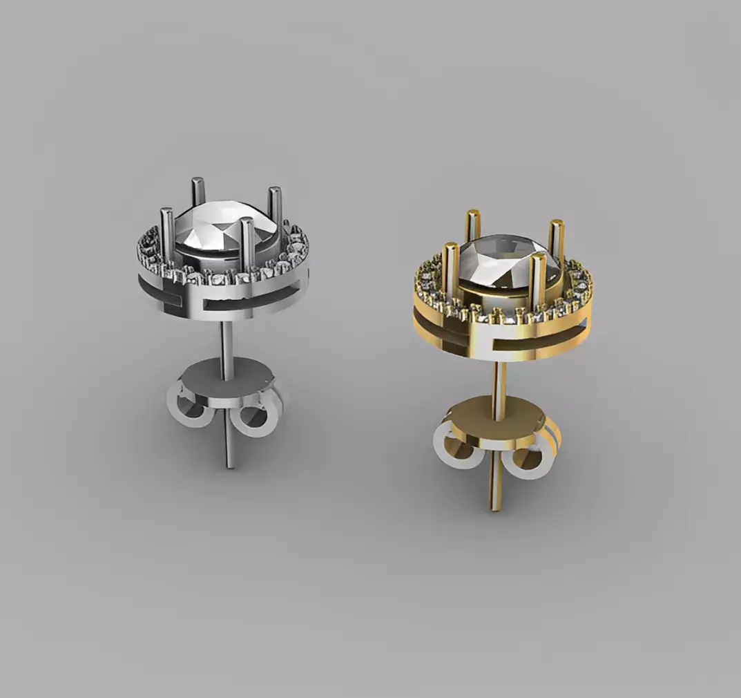 3D model of a luxury stud earring with prong and halo gemstone-style setting, optimized for 3D printing.Created in Rhinoceros 6, this design features precise geometry, clean structure, and elegant proportions—ideal for high-end jewelry, custom accessories, or decorative fashion elements.